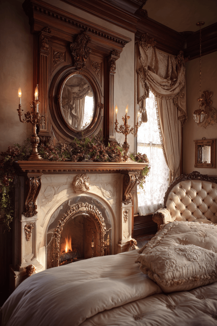 Decorative mantelpieces bring architectural interest into an antique bedroom, adding both charm and warmth. Detailed finishes in wood or marble create a classic focal point. Styled with candles, art, or vintage accents, they enhance the room’s personality. Even without a fireplace, they add depth and structure. Their presence evokes a timeless, old-world feel. Introduce a mantel feature to give your antique bedroom added character.