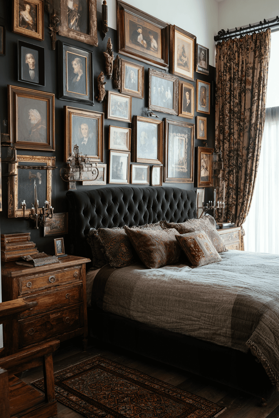 Curated portrait displays add personality and depth to an antique bedroom, creating a gallery-inspired look. A mix of paintings and framed images enhances visual interest. Arranged thoughtfully, they elevate the room’s elegance. These collections pair beautifully with classic décor. The artwork tells a meaningful story. Create a gallery wall that reflects your antique bedroom style.