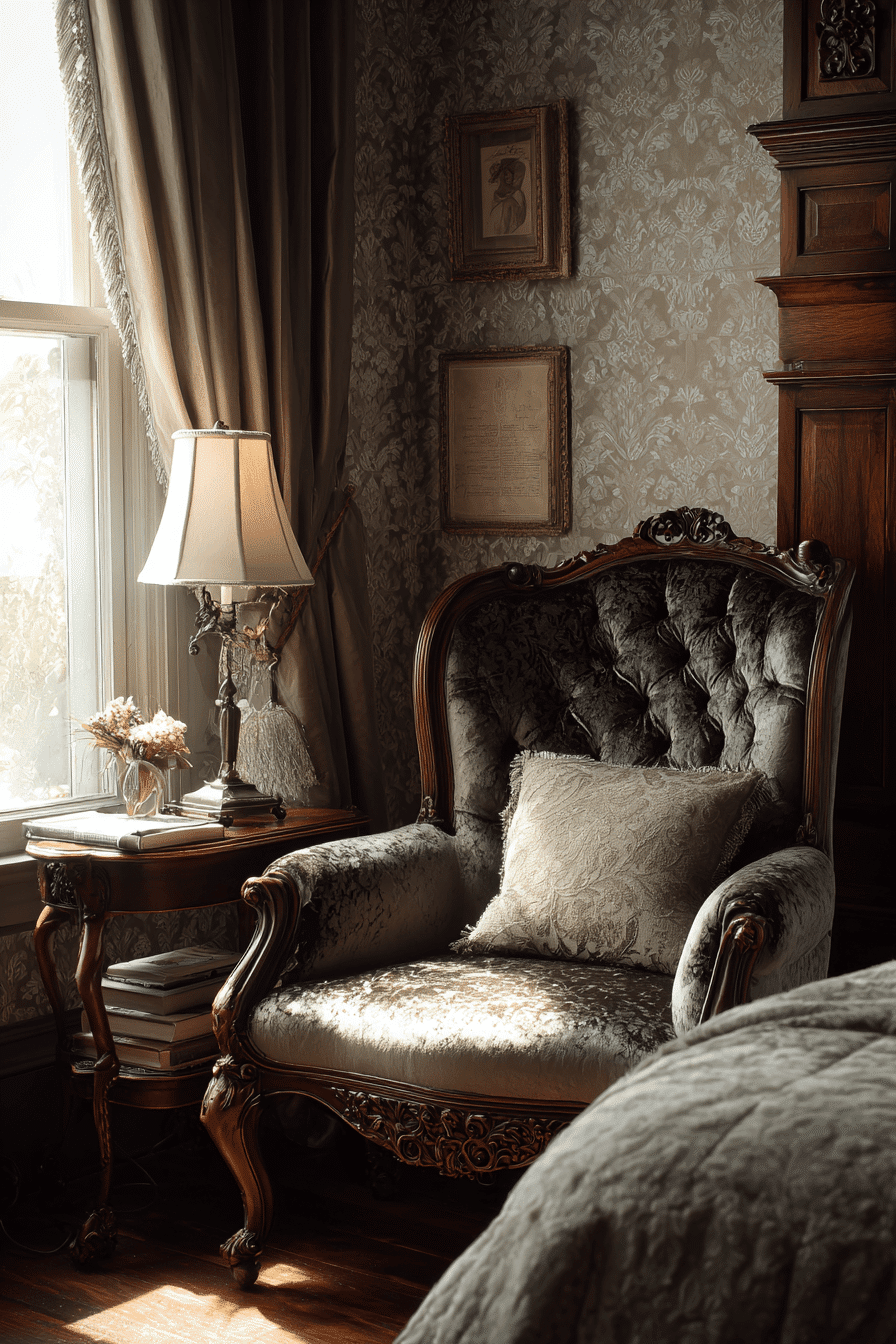 Classic accent seating adds both comfort and elegance to an antique bedroom, enhancing its design. Upholstered fabrics bring softness and texture. Carved frames reflect traditional craftsmanship. Positioned near windows or vanities, they create cozy corners. These pieces tie the room together beautifully. Add a chair that brings comfort and timeless style.