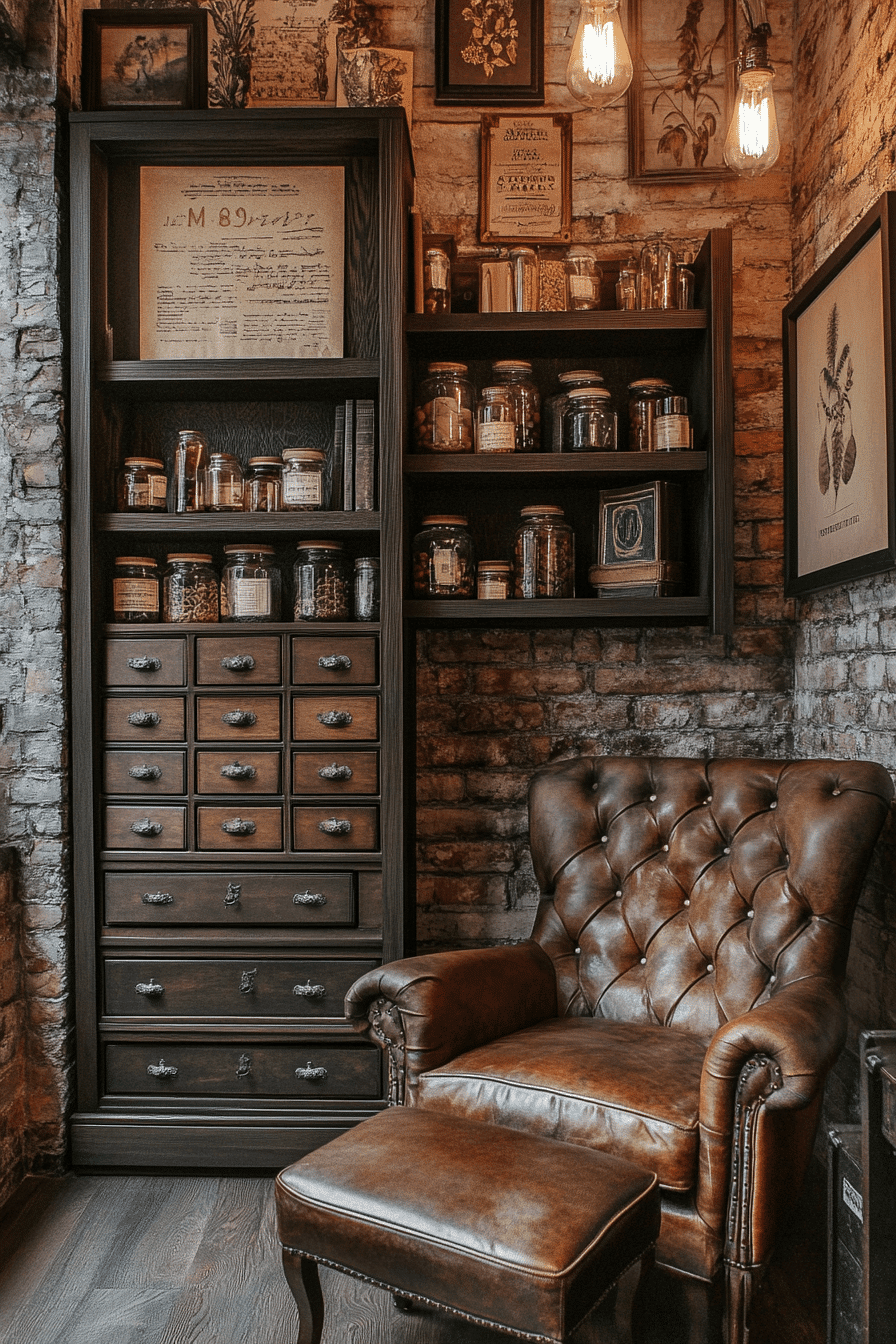 Apothecary-style shelving adds both function and charm to an antique bookshelf, combining drawers with open display. Small compartments allow for organized styling. Warm wood tones and labeled pulls add vintage appeal. This design keeps everything tidy yet visually interesting. It pairs well with jars and baskets. Organize your antique bookshelf with a design that feels both practical and nostalgic.