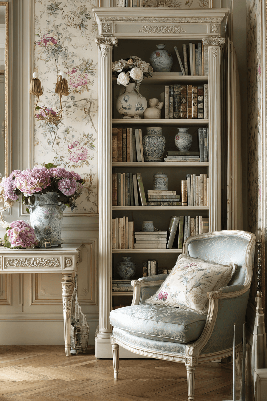 Louis-inspired shelving adds delicate refinement to an antique bookshelf, featuring soft details and elegant lines. Fluted legs and subtle carvings create a graceful look. Light finishes enhance its airy feel. It pairs beautifully with porcelain and soft décor. The design feels timeless and sophisticated. Add a touch of French elegance to your antique bookshelf.