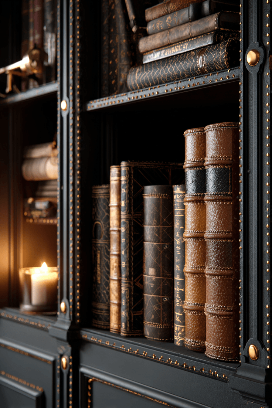 24. Leather Bound Shelf Detailing