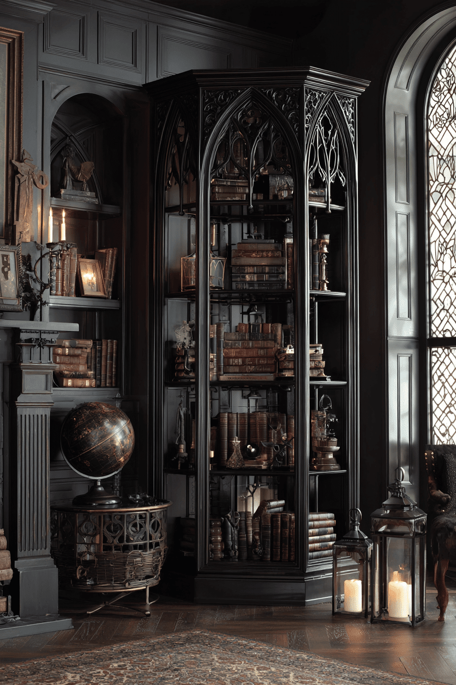 A Gothic tower design adds dramatic height and bold character to an antique bookshelf, creating a striking focal point. Pointed arches and darker finishes give it a moody, architectural presence. The vertical form draws the eye upward and adds dimension. It’s perfect for displaying classic books and vintage décor. Even in modern spaces, it adds contrast and depth. Introduce a Gothic-inspired antique bookshelf that transforms your space instantly.