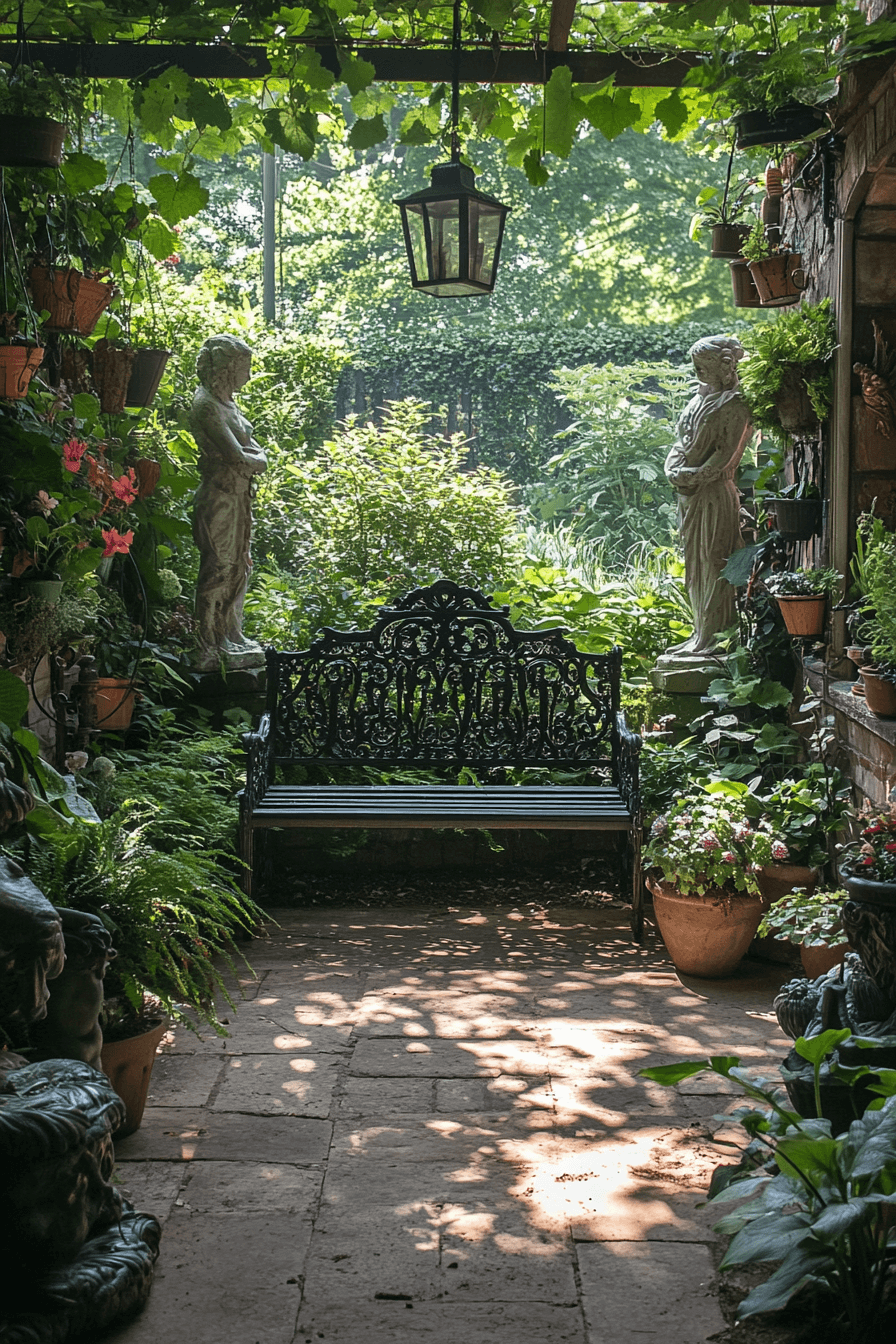 Wrought iron benches, chipped planters, and stone garden accents blend nature with heritage. They stand out as some of the most delightful antique farmhouse decor ideas for outdoor charm. Weathered textures bring soul to the fresh air, creating a perfect mix of old and new. Even imperfections become beautiful.