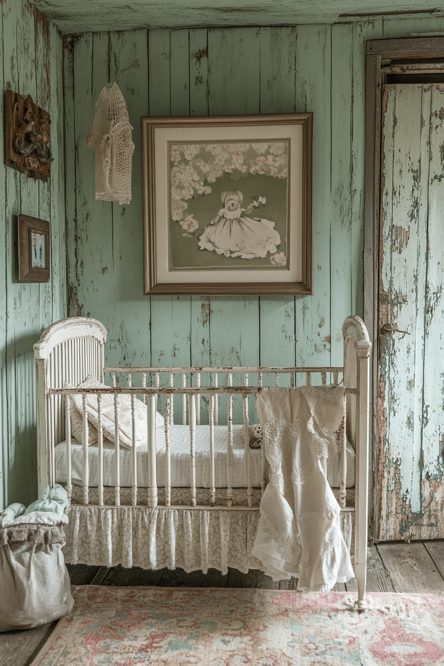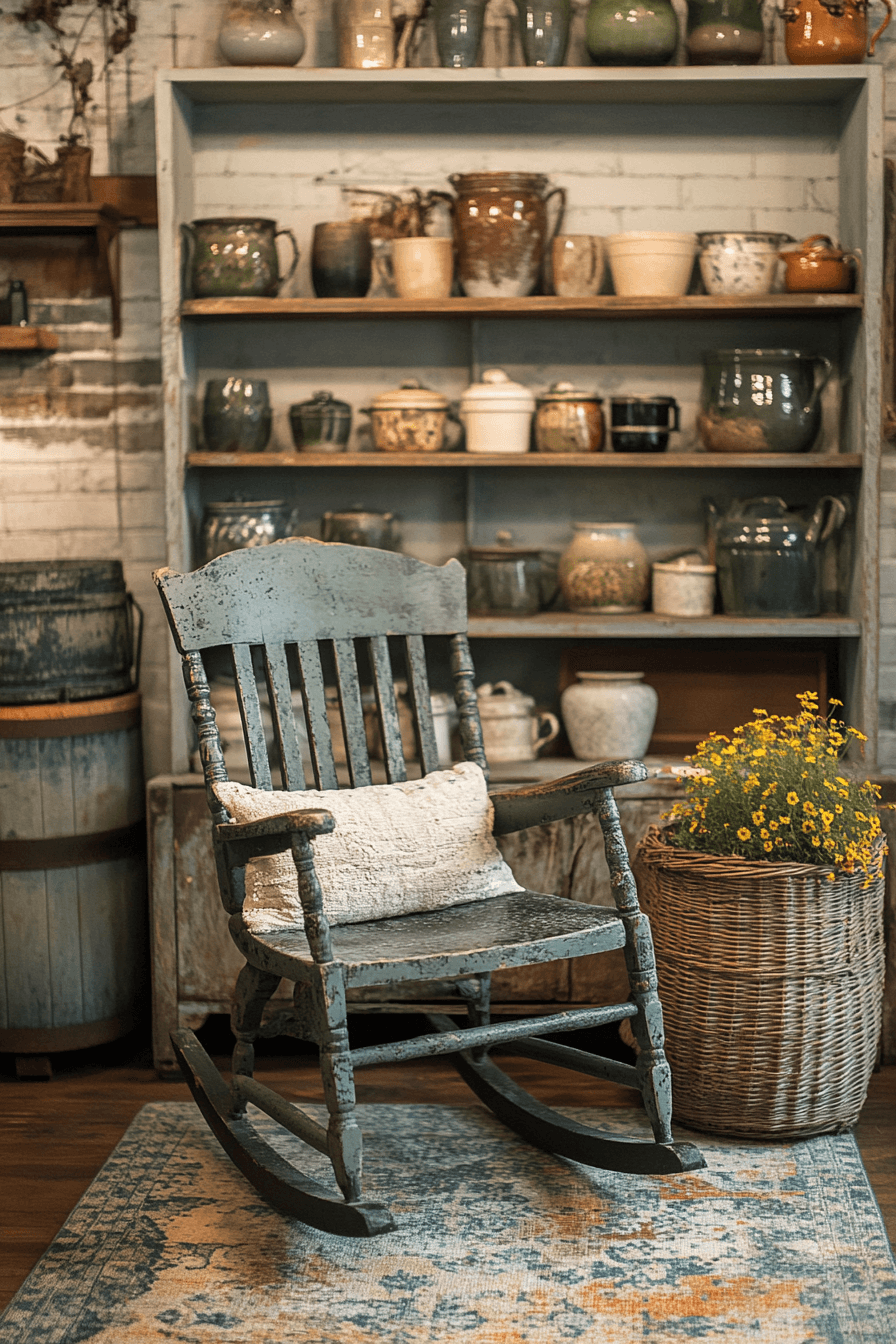 A nursery filled with wooden cribs, rocking chairs, and gentle light captures innocent charm. It’s one of the sweetest antique farmhouse decor ideas that blend nostalgia with nurturing energy. Every detail feels crafted with love and history. The atmosphere radiates calm and care.