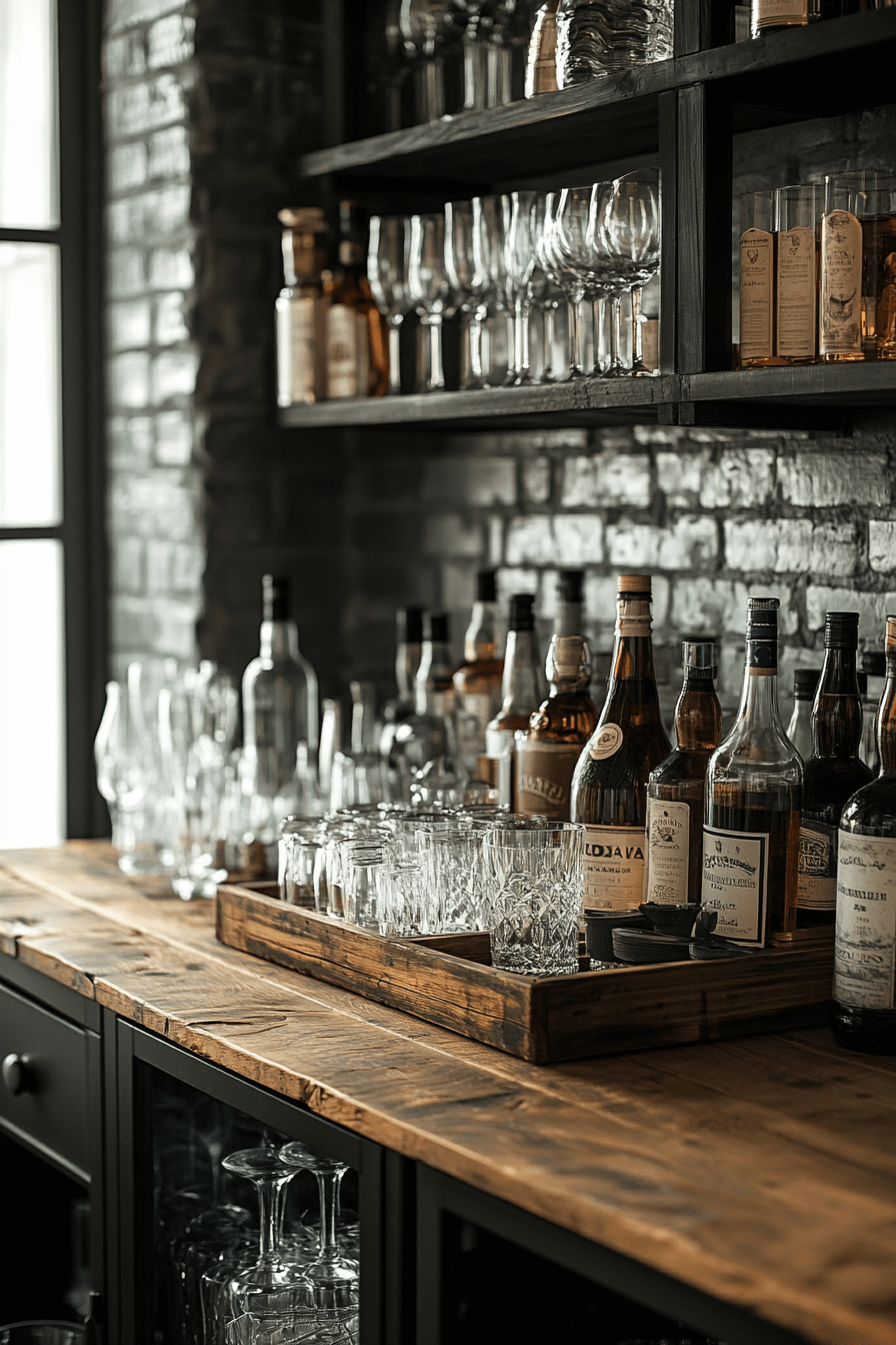 A rustic bar cart or aged stool brings a playful sophistication to any gathering. It’s one of the most charming antique farmhouse decor ideas for entertaining with ease. The mix of metal and wood feels sturdy, stylish, and full of character. Every pour carries a sense of story.