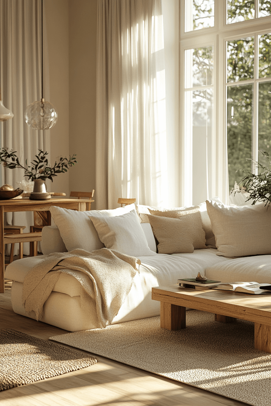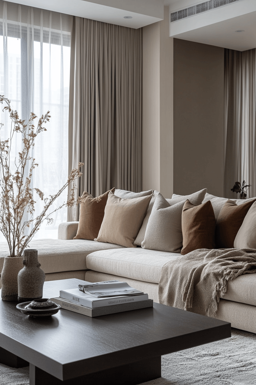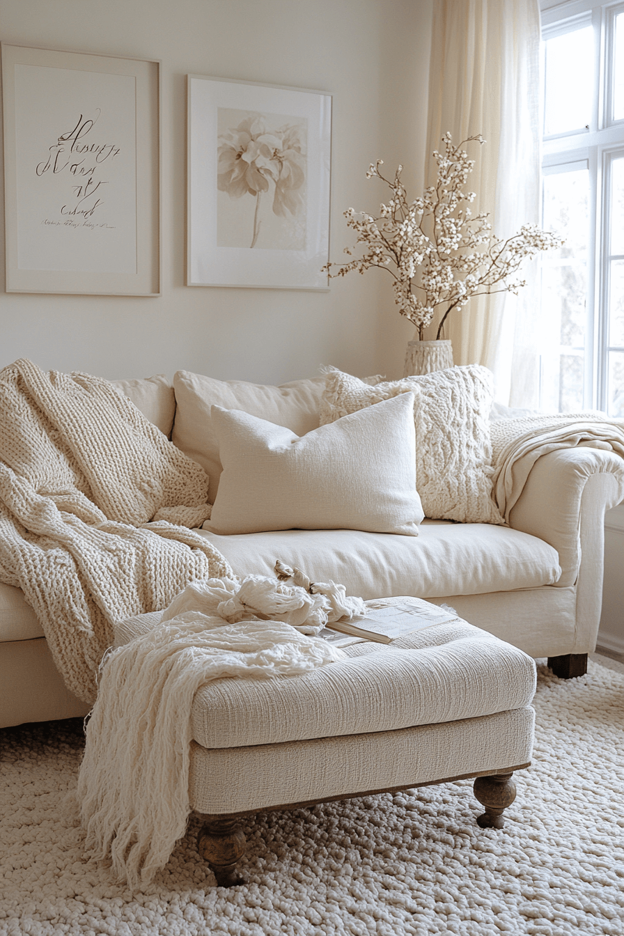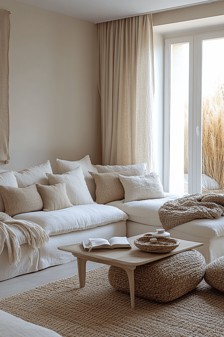 Neutral tones paired with rich textures make any living space feel serene, balanced, and easy to unwind in. The apartment aesthetic cozy style here emphasizes comfort through soft upholstery, tactile throws, and natural woven accents. Light materials ensure the room feels open and airy, while subtle layering adds depth. Minimal yet meaningful design choices keep the look adaptable for years to come.