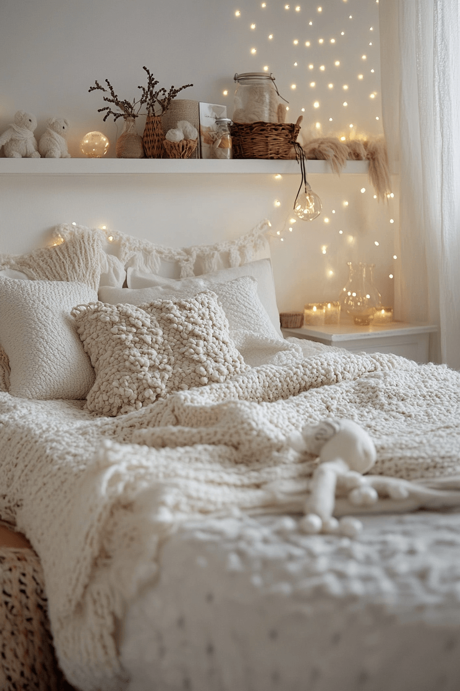 All-white interiors feel crisp yet comfortable when styled with texture and layered accents. The apartment aesthetic cozy atmosphere comes from soft fabrics, woven rugs, and subtle decorative touches. Natural materials like wood or rattan add warmth to the clean palette, preventing it from feeling stark. Every detail feels fresh, airy, and inviting, making the space a timeless retreat.