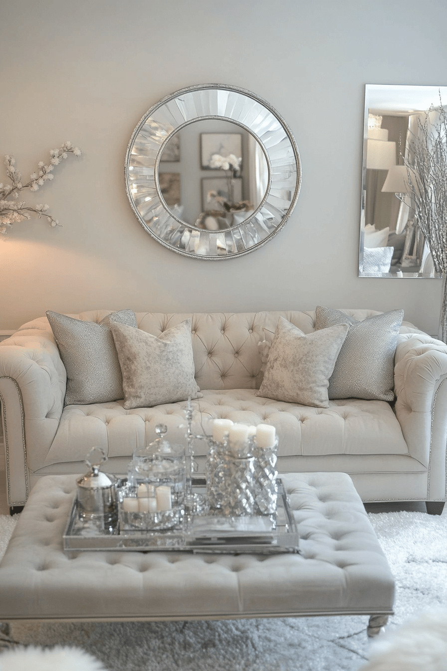 Light gray and silver accents offer a cool, modern touch while keeping the atmosphere welcoming and chic. The apartment aesthetic cozy appeal is maintained through plush textiles like faux fur throws and velvet cushions, paired with warm ambient lighting. Sleek furniture pieces keep the layout streamlined and clutter-free. Subtle shimmer in metallic details adds understated elegance for a polished finish.
