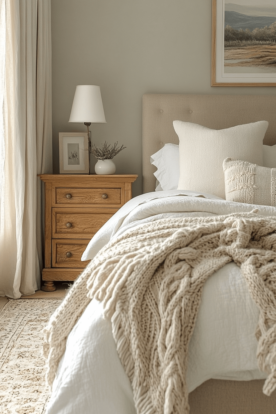 Cream tones in the bedroom create a serene and restful atmosphere that feels warm yet fresh. The apartment aesthetic cozy touch is found in plush bedding, layered throw blankets, and soft ambient lighting for a spa-like feel. Minimal clutter and thoughtful storage solutions enhance the calming mood. Neutral accents like beige cushions and light wood finishes keep the look timeless and harmonious.