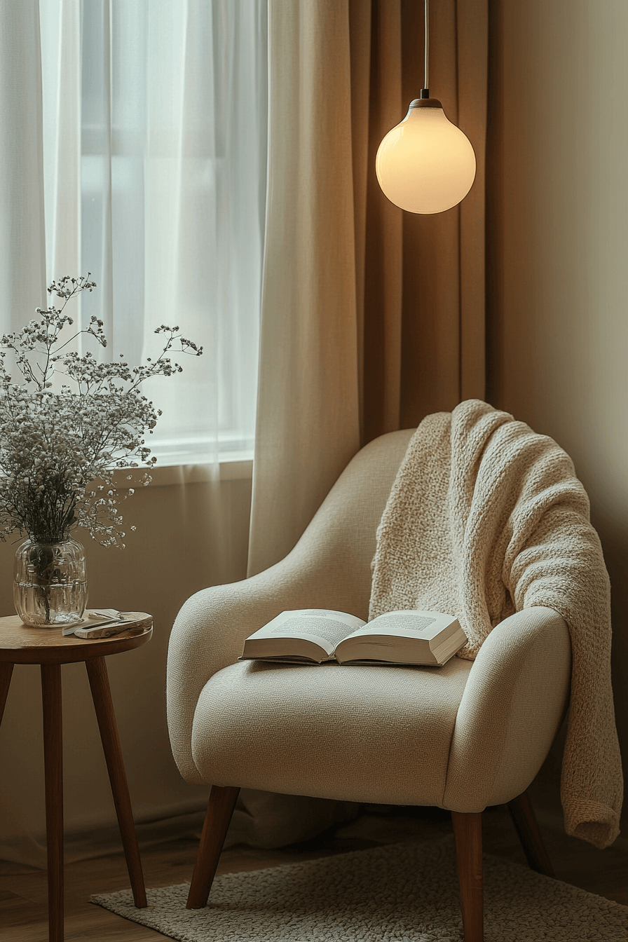 A calm corner is the perfect place to unwind and recharge after a busy day, offering a personal escape within your home. This apartment aesthetic cozy setup uses plush seating, a soft throw, and gentle lighting to create an atmosphere of pure relaxation. Neutral colors and organic textures add to the serenity, making it a versatile space for reading, napping, or meditating. Thoughtful decor elements keep it personal and inspiring.