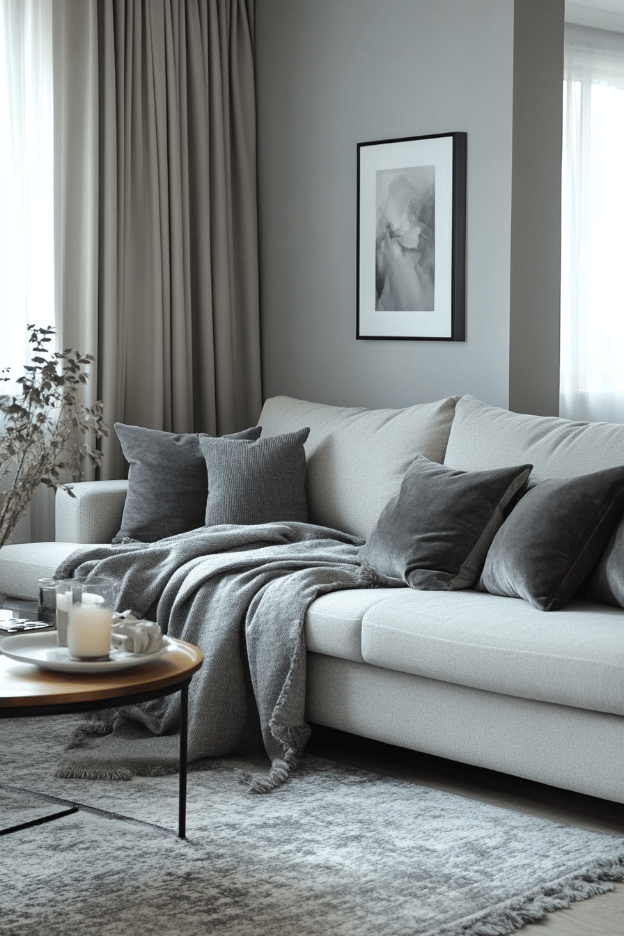 Monochrome gray interiors bring sophistication with a soft, inviting edge. The layered textures in this apartment aesthetic cozy setup prevent the space from feeling too stark. Streamlined furniture ensures comfort without overwhelming the layout. Light tones keep the look bright and fresh.