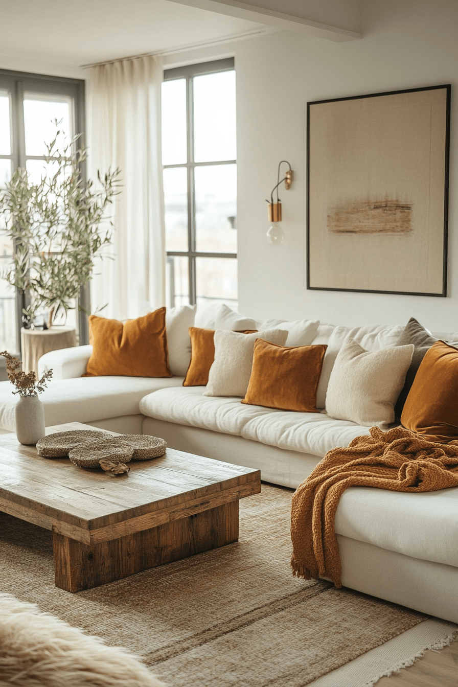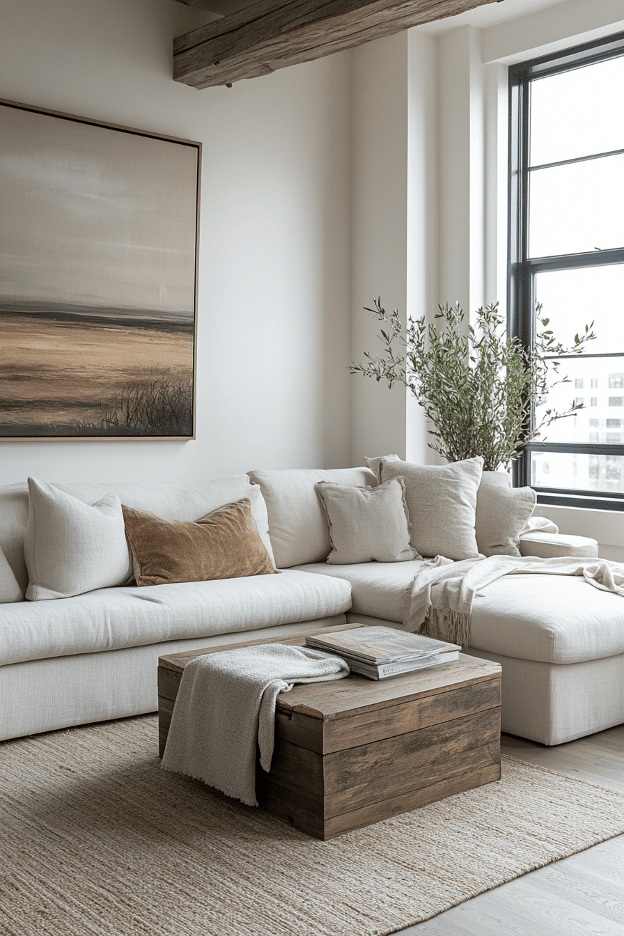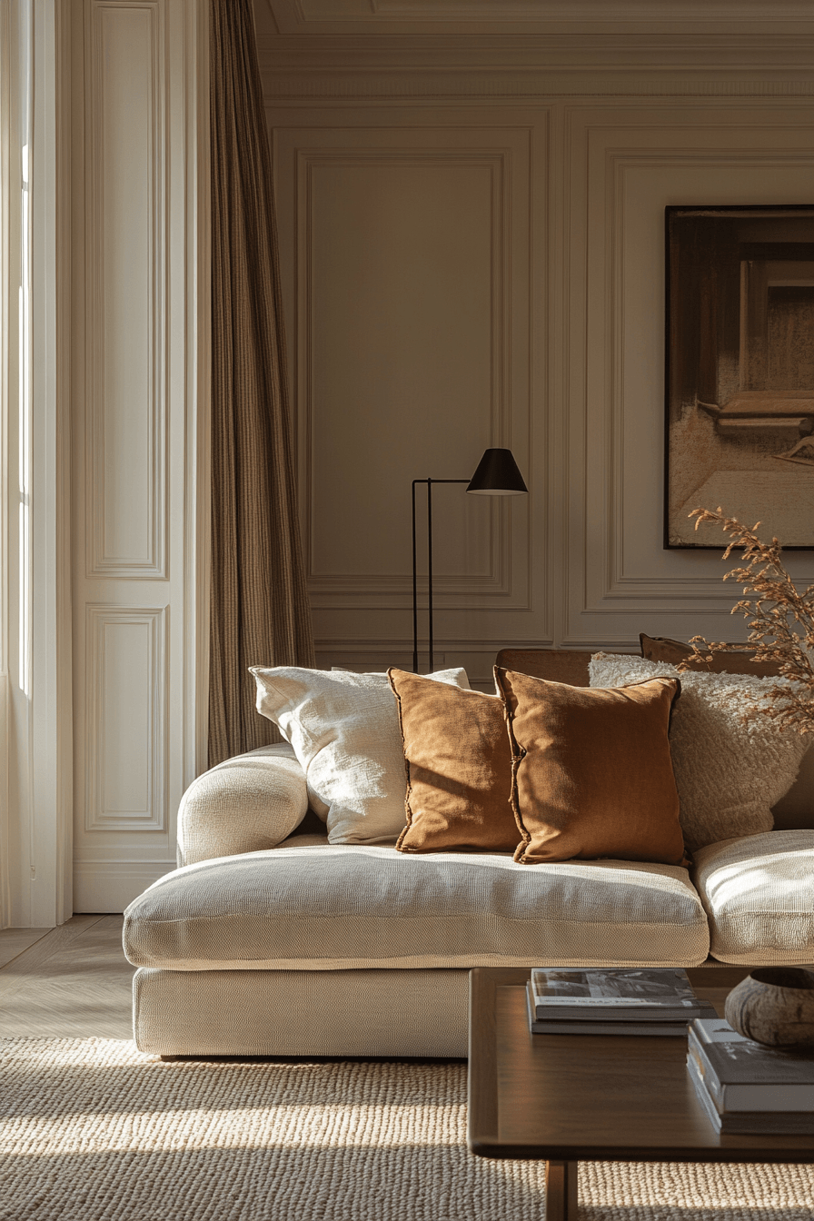 Soft tonal layers create apartment inspiration that feels calm, cohesive, and effortlessly elevated. Creams, warm ivories, and taupe shades blend seamlessly to form a soothing backdrop. Light-reflective surfaces help open up the space while keeping it warm. Plush textures like throws and rugs add comfort without heaviness. The result is a space that feels both airy and inviting. Bring this soft neutral look into your apartment and feel the calm instantly.