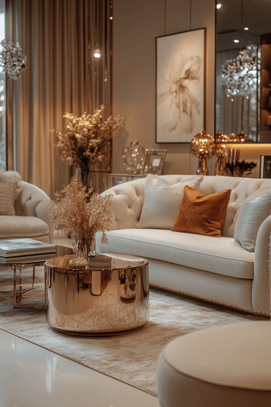 Adding subtle shine introduces refined apartment inspiration that feels elevated without excess. Metallic details and plush textures add sophistication. Neutral tones keep the design grounded. The space feels polished yet relaxed. Small accents create a big impact. Add a touch of shine and instantly upgrade your apartment.