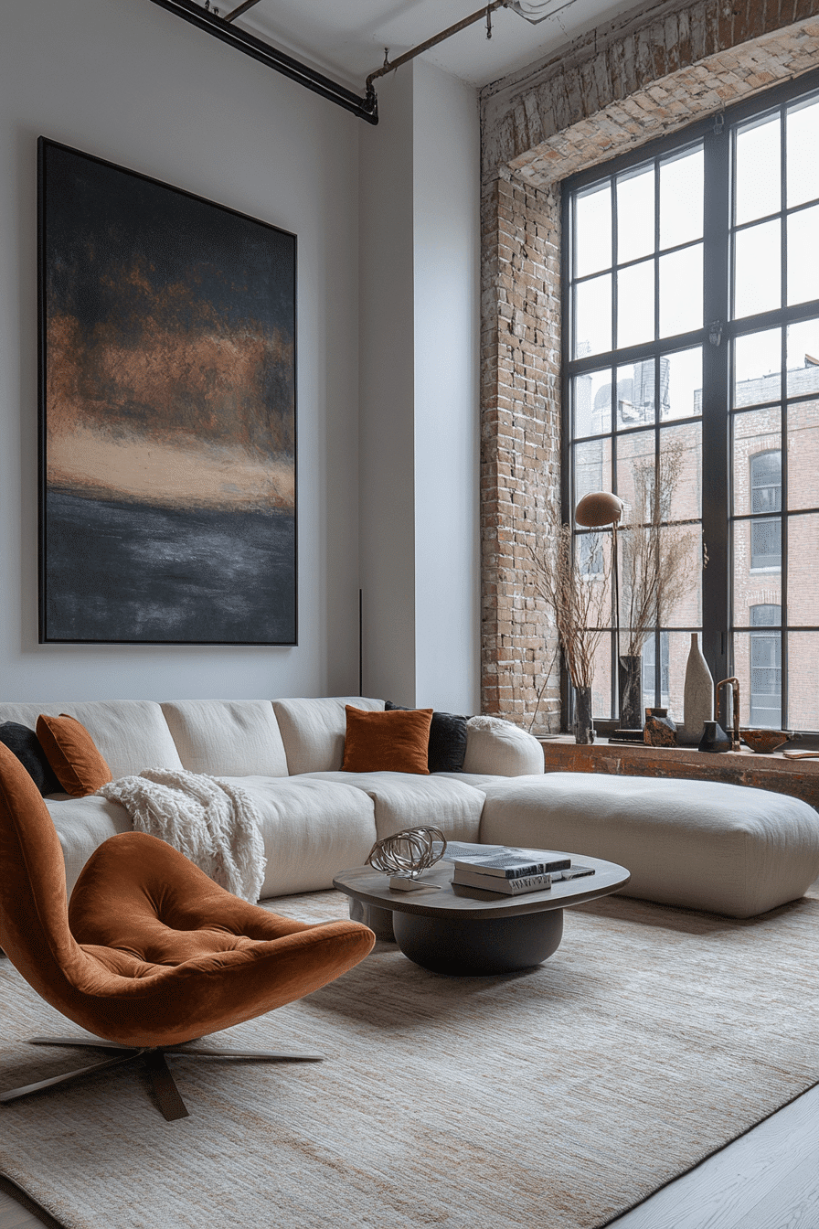 Soft textures paired with modern shapes create inviting apartment inspiration that feels warm and refined. Plush seating enhances comfort. Clean lines maintain structure. The design feels versatile and livable. The space balances relaxation with style. Bring cozy modern elegance into your apartment today.