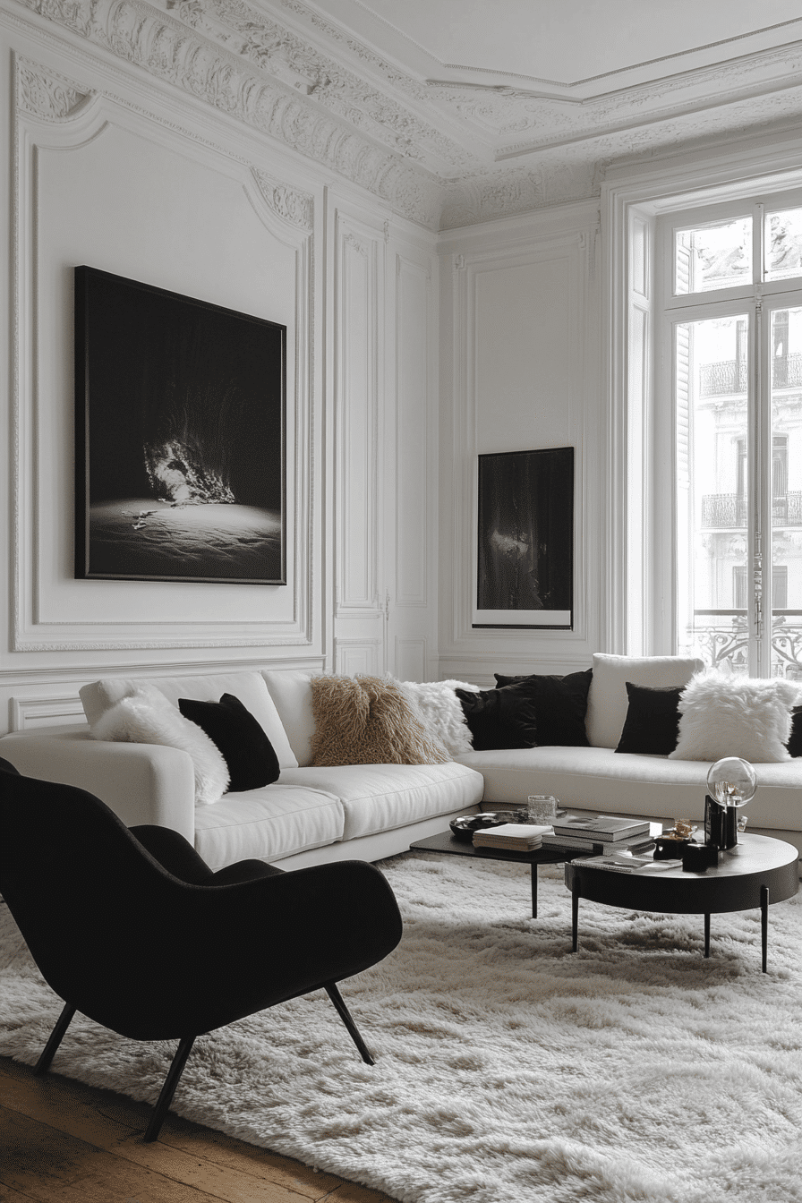 A classic black-and-white combination delivers timeless apartment inspiration with a bold modern edge. Crisp contrast defines the space clearly. Clean finishes enhance the structured look. Soft accents keep the design approachable. The result feels sharp yet inviting. Use this color pairing to create a dramatic yet balanced apartment.