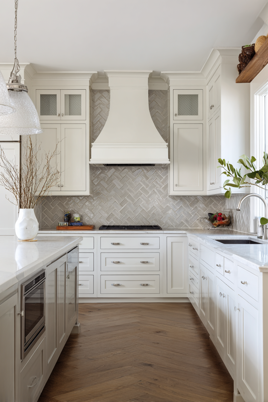 These aren’t your grandma’s tiles! A grey herringbone tile pattern adds instant sophistication to any kitchen. Pro tip: pair with white cabinets for maximum impact.