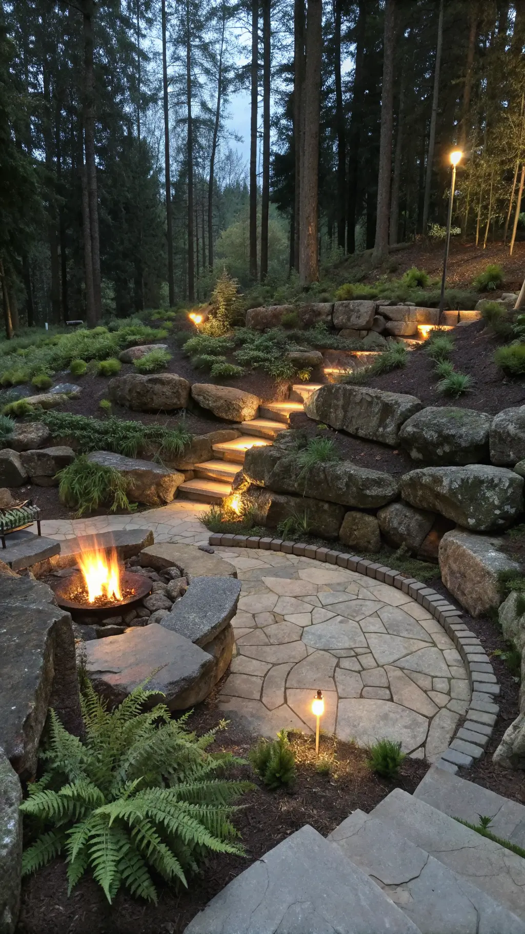 Imagine rough-hewn stones, wooden benches, and a fire pit that looks like it was carved by nature itself. Rustic fire pits scream authenticity and warmth.