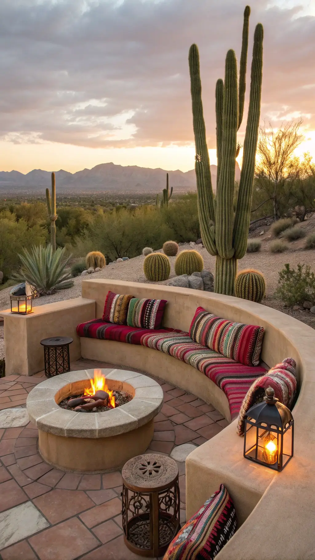 • Built-In Stone Benches: Seamless and durable