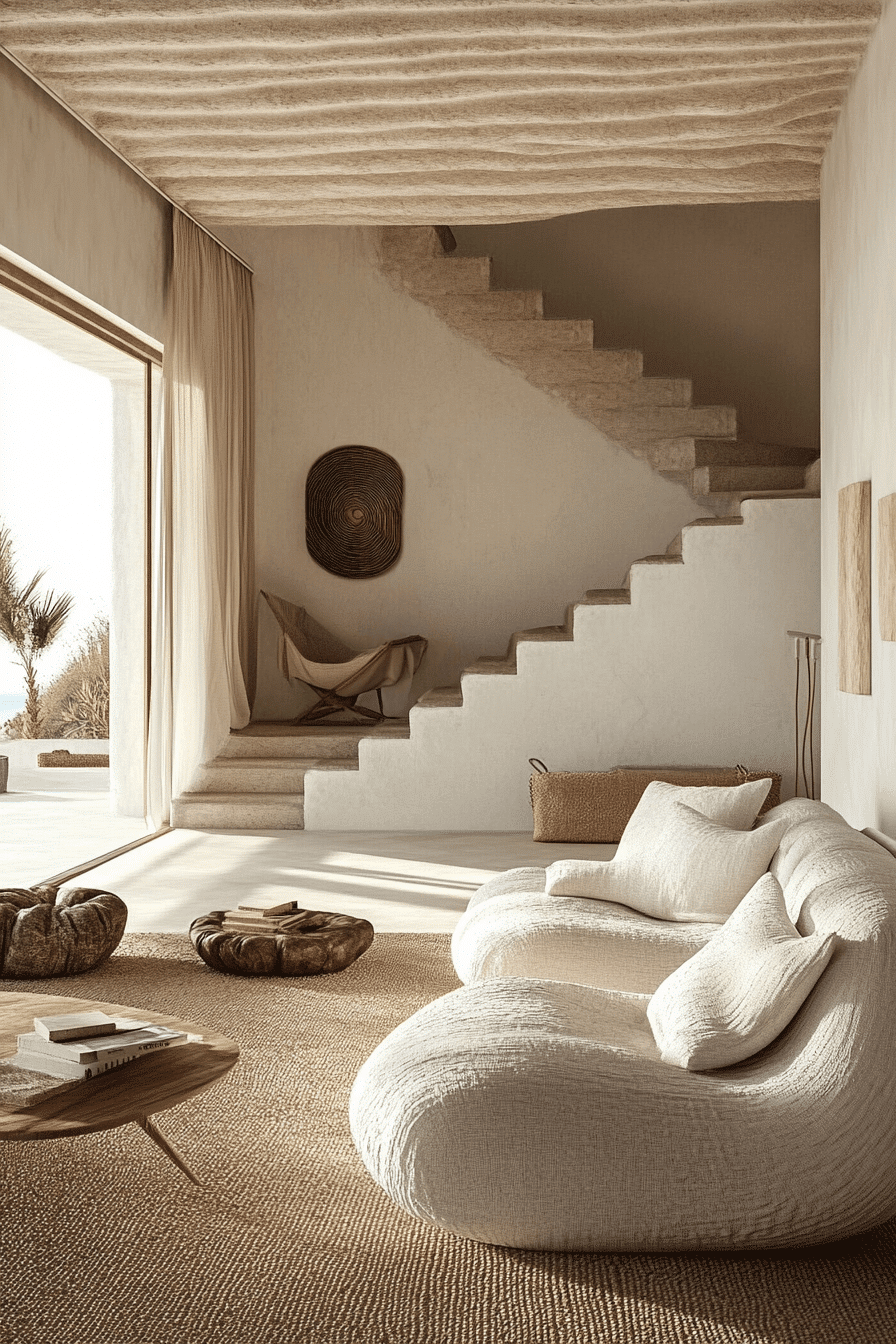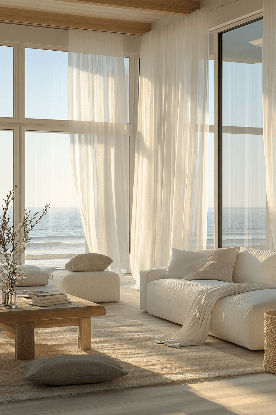 Movement and flow define a beach house living room filled with airy fabrics and relaxed textures. Sheer materials and light upholstery mimic ocean breezes. The space feels dynamic yet calm. Soft lighting enhances the atmosphere in the evening. Everything feels easy and natural. Add these breezy touches and refresh your beach house living room.