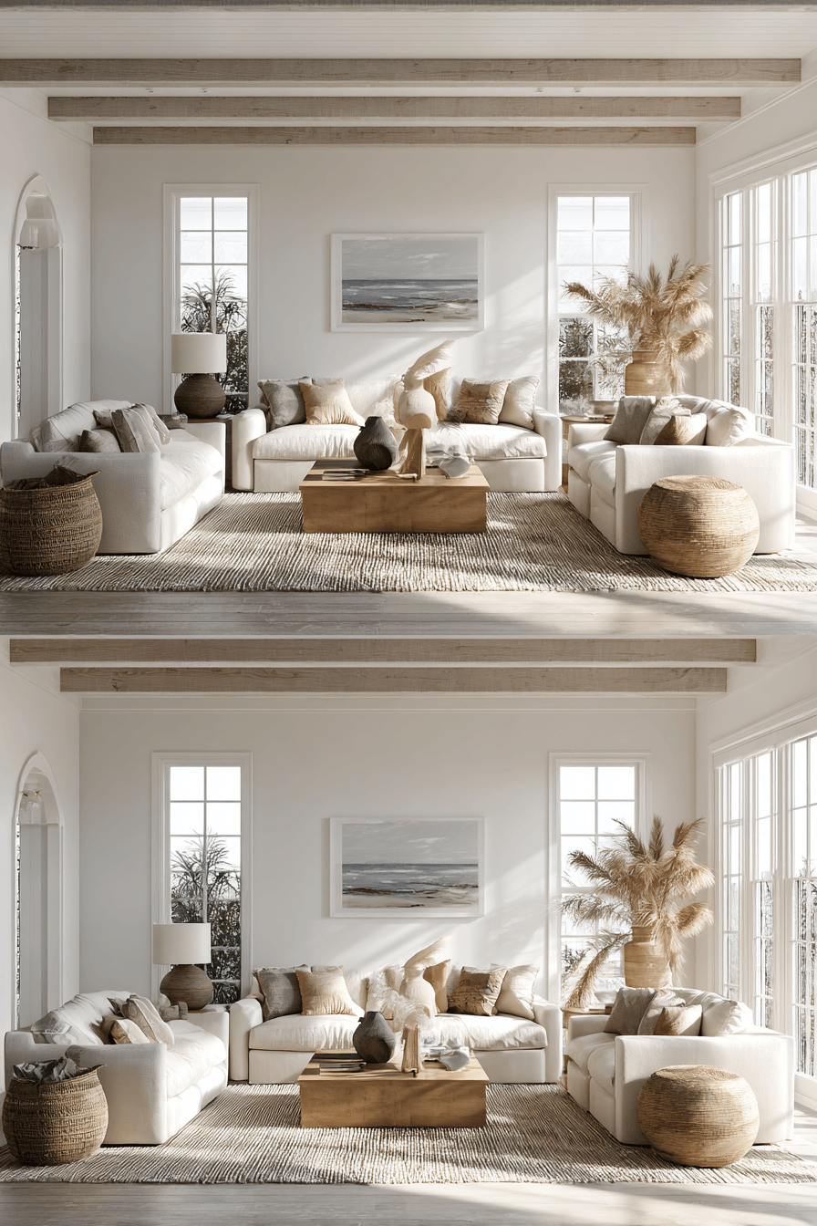 A beach house living room should feel like a breath of fresh air—light, open, and deeply relaxing. Whether you’re drawn to soft neutrals, ocean-inspired hues, or natural textures, the right design brings the calm of coastal living indoors. These 27 beach house living room ideas blend comfort with style, offering a range of looks from minimalist and modern to warm and layered. Each space is designed to help you unwind, connect with nature, and create a home that feels effortlessly inviting. Get inspired to transform your living room into a peaceful retreat that captures the essence of seaside living.