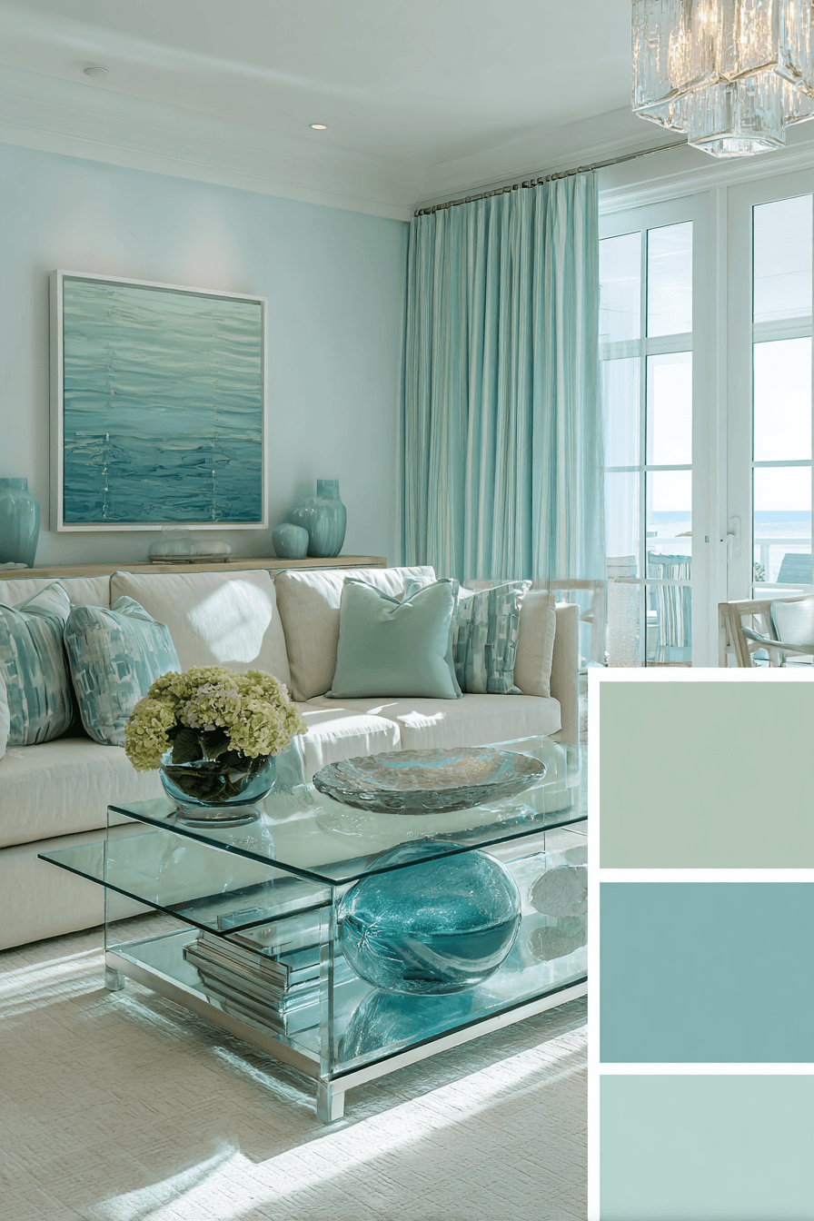 Hints of ocean-inspired color bring life into a beach house living room without overwhelming the space. Soft greens and blues create a refreshing, airy atmosphere. Balanced with neutral tones, the palette stays calm and modern. Light catches these colors beautifully throughout the day. The space feels cool, relaxed, and inviting. Add these tones and energize your beach house living room.