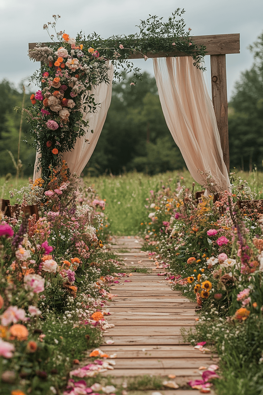 Step into a field of wildflowers where colors burst in every direction, creating a wedding straight out of a dream. Rustic wood accents and soft fabrics complete the scene. The mood is effortlessly romantic and nature-inspired. Perfect for couples who want a relaxed yet vibrant setting.