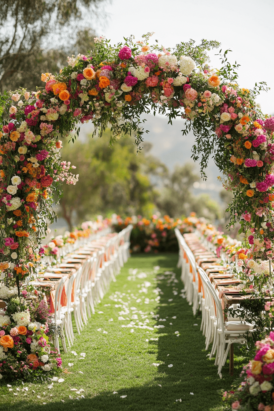 Fill your wedding with a rainbow of bold, cheerful colors. Playful details keep the energy high. The look is unforgettable and vibrant. Perfect for couples who love a lively vibe.