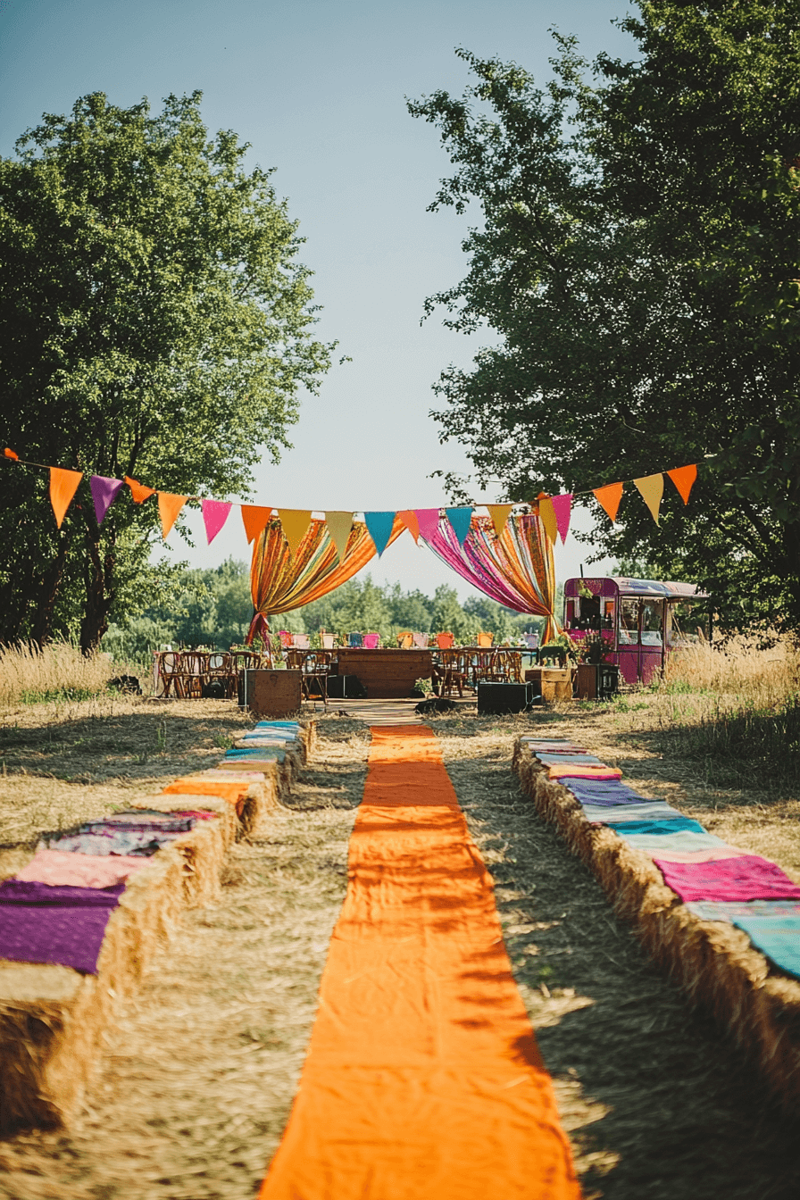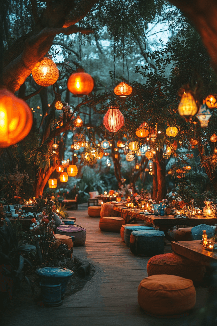 Fill your day with bold colors, layered fabrics, and playful patterns for a spirited celebration. Cozy seating areas invite guests to linger and connect. The vibe is eclectic and free-spirited. Perfect for adventurous souls.