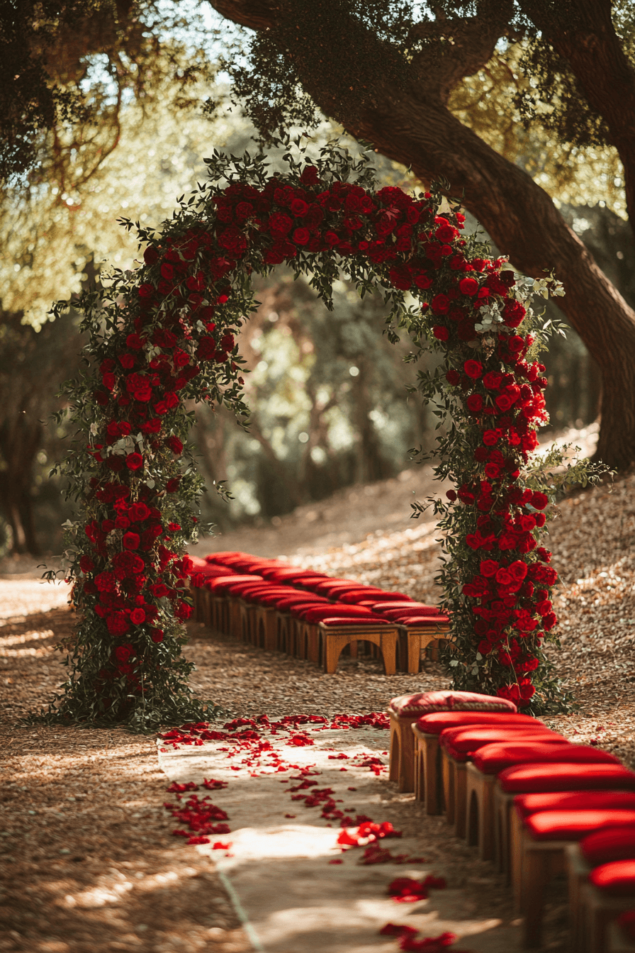Warm up your venue with deep reds and handmade accents. Textured details make every space feel personal. The style is bold yet cozy. Ideal for intimate celebrations.
