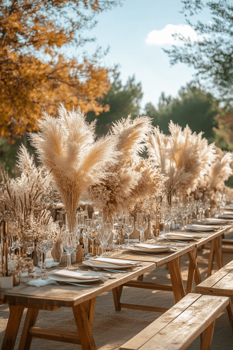 Create soft elegance with pampas grass and neutral tones. The textures are airy yet grounded. The effect is effortlessly sophisticated. Perfect for minimalist boho couples.
