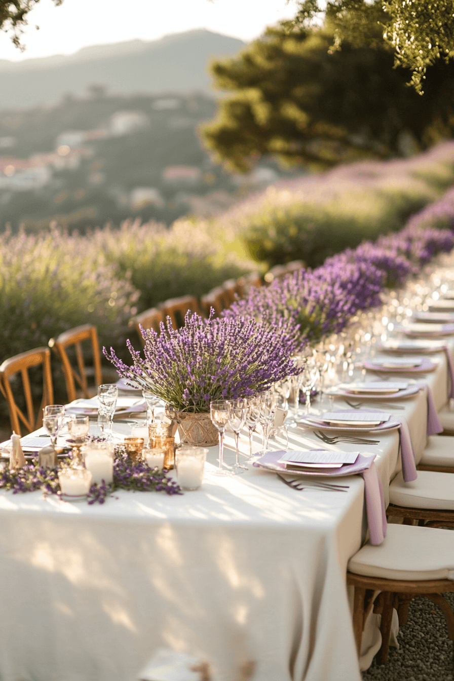 Surround your day with the gentle elegance of lavender blooms. Soft purples pair beautifully with greenery and rustic wood touches. The fragrance adds a sensory element to your vows. Perfect for outdoor ceremonies.