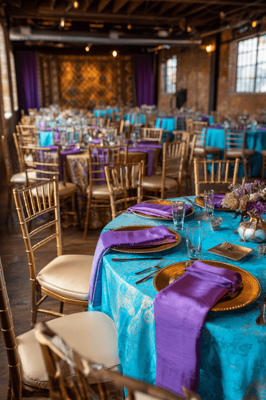 Bold jewel tones bring depth and drama to a boho wedding inspired by peacock elegance. Rich colors flow seamlessly from ceremony to reception. Statement decor becomes the centerpiece of the layout. Metallic accents enhance the vibrant palette. The overall look feels luxurious and expressive. Make your boho wedding stand out with this stunning color story.