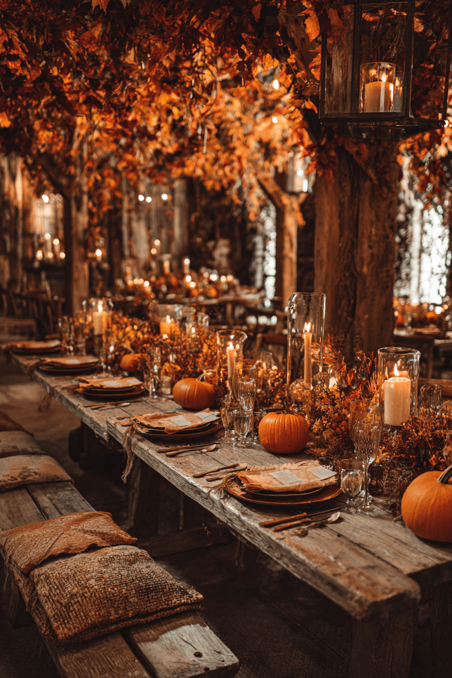 Warm fall tones create a cozy and layered boho wedding full of seasonal beauty. Deep oranges and reds add richness to every detail. Natural elements like wood and leaves enhance the design. The layout feels structured yet organic. Soft lighting adds to the welcoming mood. Celebrate your boho wedding with this autumn-inspired look.
