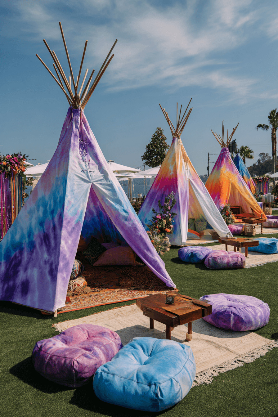 Bright colors and playful details turn this boho wedding into a lively celebration full of fun. Tents and bold decor create an exciting setting. Organized layouts keep everything flowing smoothly. Entertainment areas add layers of enjoyment. The space feels vibrant yet welcoming. Go all out and design your ultimate boho wedding celebration.