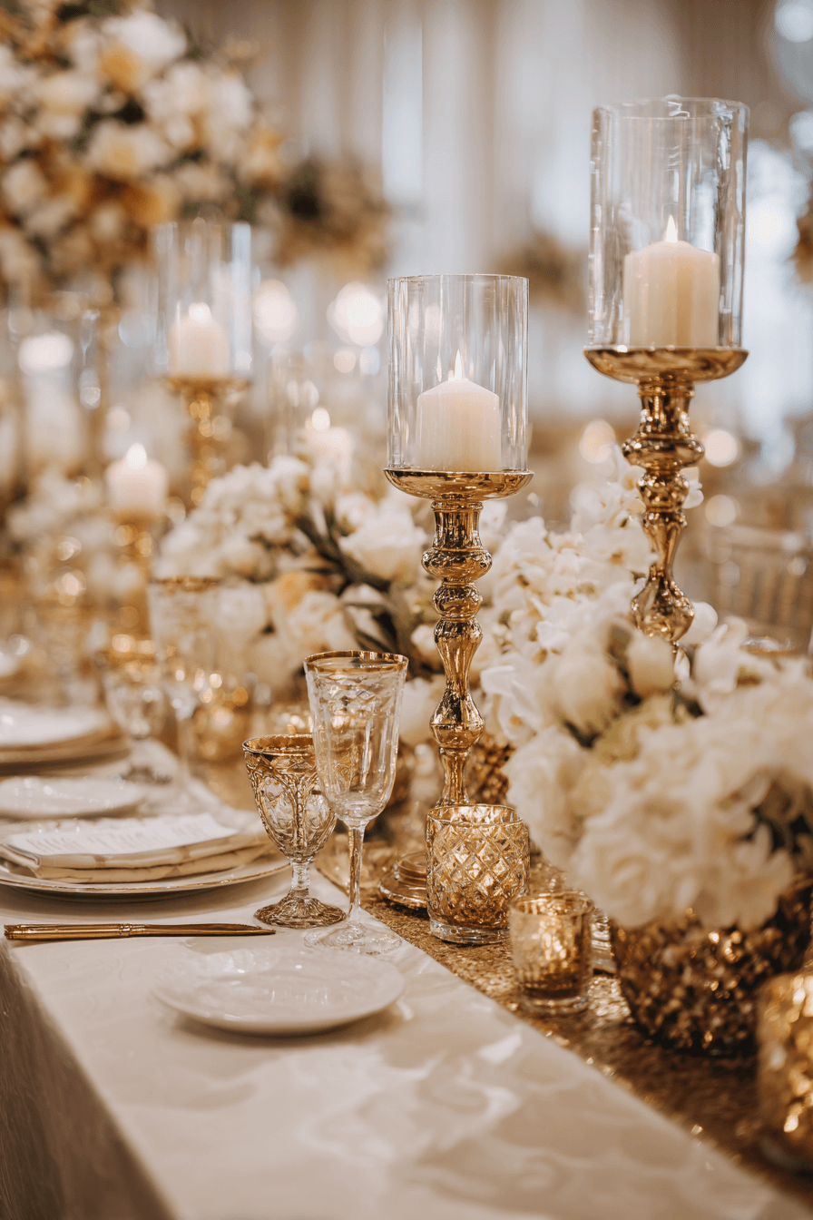 Subtle gold accents add a refined glow to a boho wedding that feels both elegant and relaxed. Neutral tones keep the base soft and balanced. Metallic details bring warmth and shine throughout. Tables are styled with simple yet polished decor. Lighting enhances the cozy atmosphere. Add this touch of luxury to your boho wedding.
