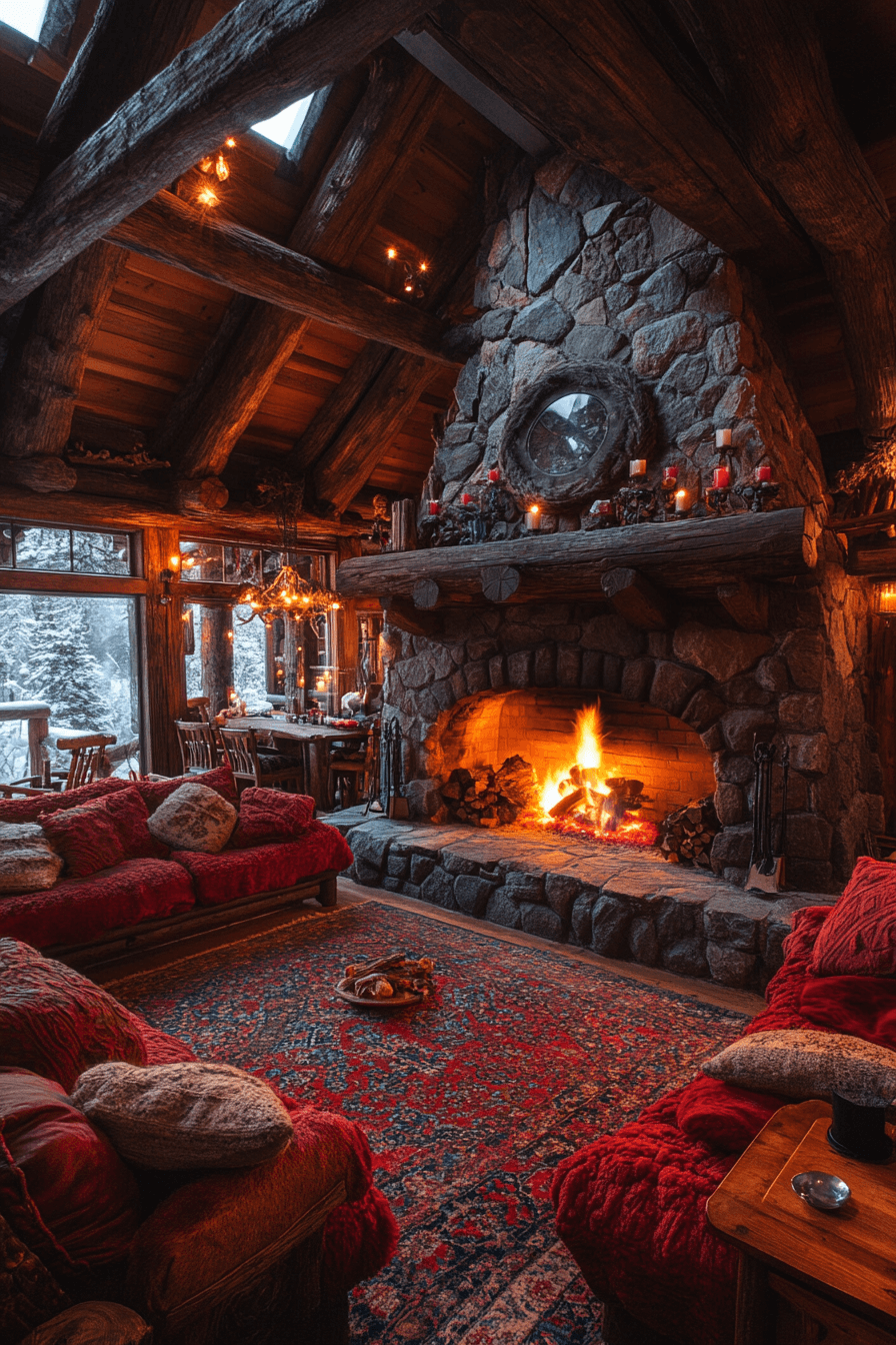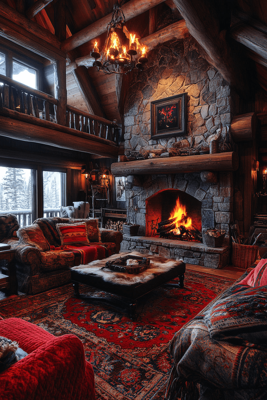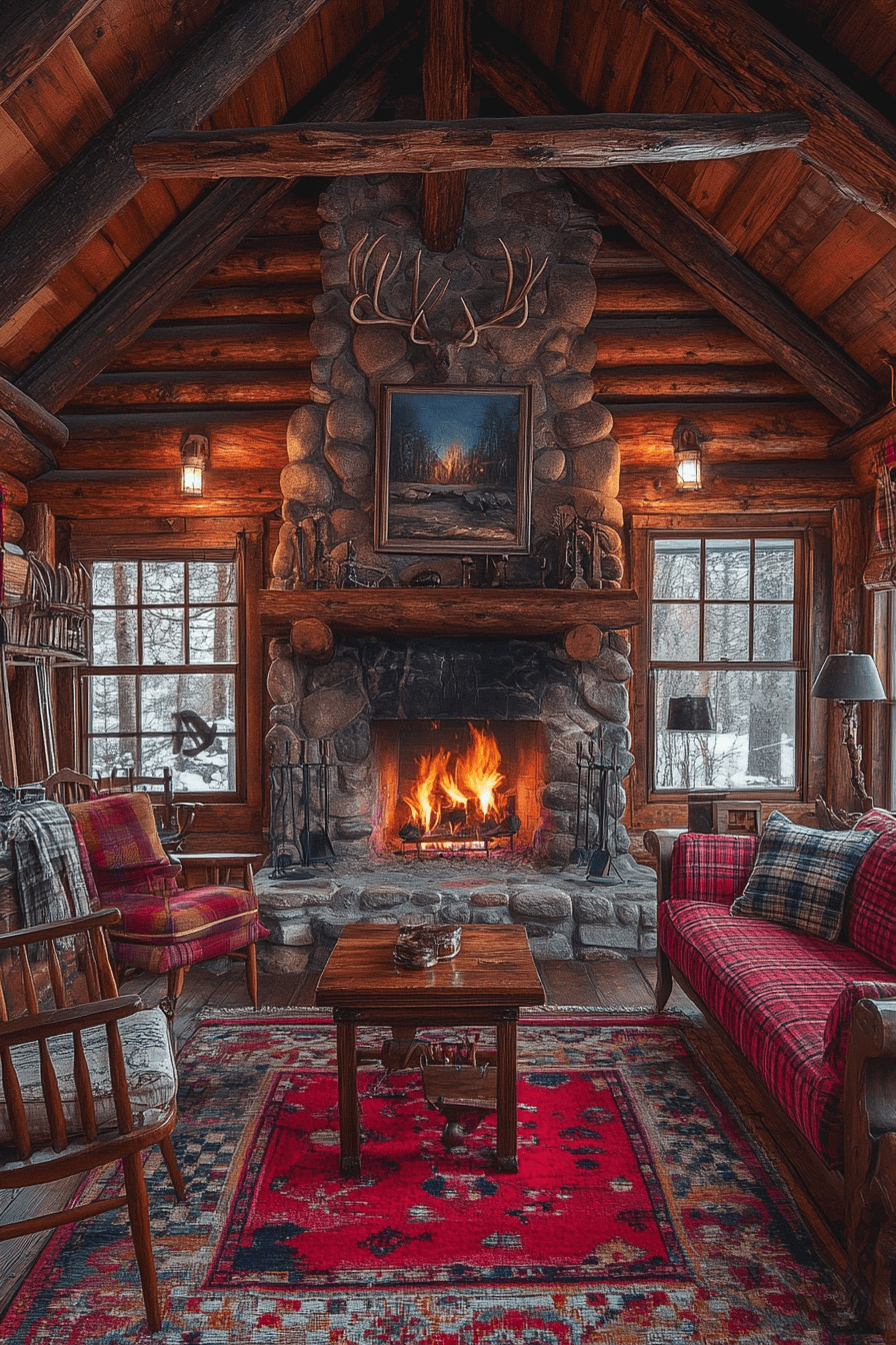 Cabin interiors feel so inviting because they blend warmth, texture, and rustic character in a way that instantly makes a home feel cozy and grounded. These ideas show how wood, stone, layered textiles, and soft lighting can create a space that feels both timeless and deeply comfortable.