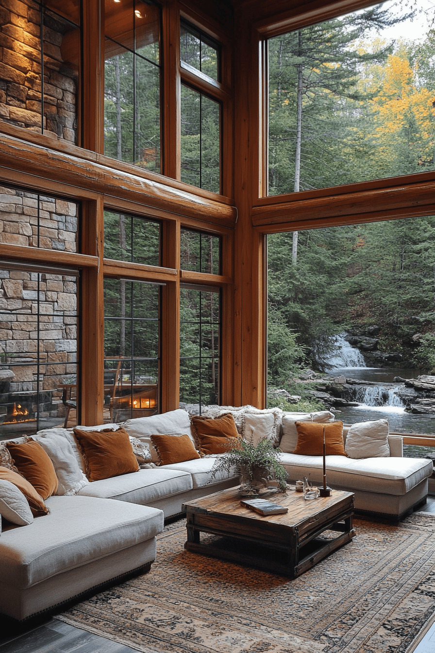 Soft textures and calming tones define cabin interiors near flowing water for a peaceful retreat. Natural sounds enhance the relaxing atmosphere. Open layouts create a seamless connection outdoors. The space feels serene and grounding. Every detail promotes calm. Build your perfect escape with these cabin interiors.
