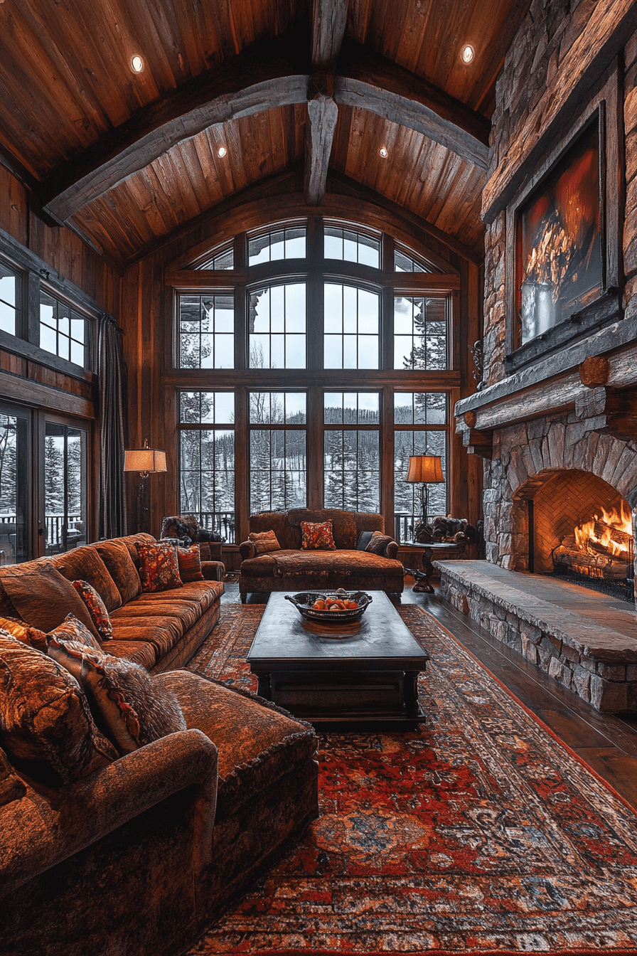 Deep tones and soft lighting create cabin interiors that feel like a perfect winter hideaway. Thick fabrics and layered textures add comfort and visual depth. Exposed beams and natural materials bring in classic cabin character. The overall atmosphere feels snug, warm, and relaxing. It’s a space designed for quiet moments and cozy nights. Recreate this winter lodge vibe and enjoy your cabin interiors year-round.