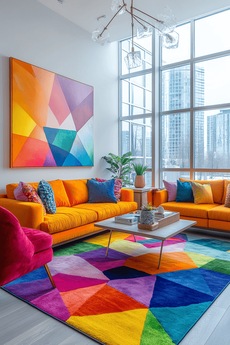 Art-inspired designs bring colorful living room ideas to life through bold prints and expressive decor. Graphic elements become instant focal points. Bright furnishings tie everything together seamlessly. The space feels playful yet cohesive. Creativity shines in every corner. Turn your living room into an artistic statement.
