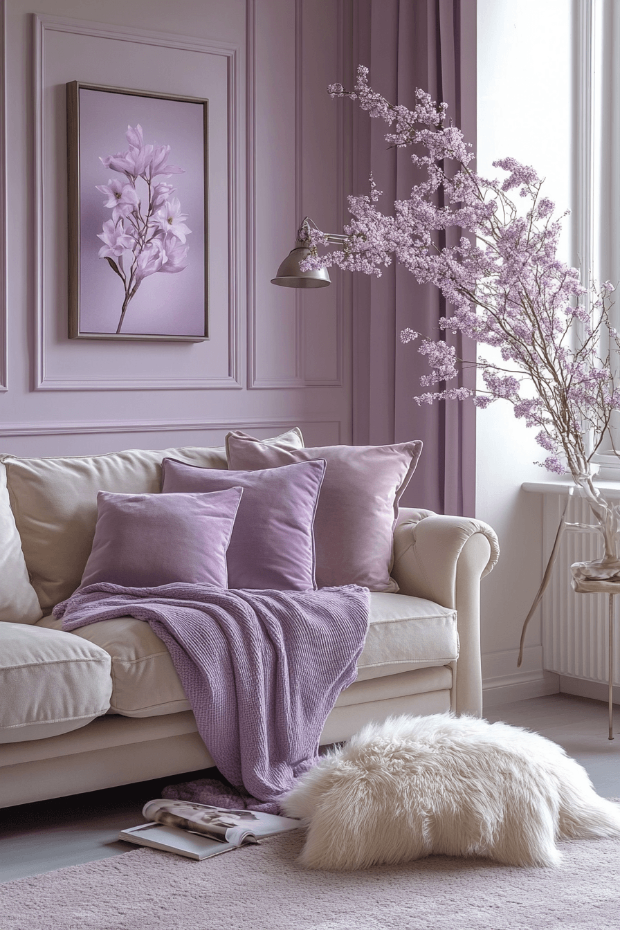 Lavender tones soften colorful living room ideas into dreamy, relaxing spaces filled with subtle charm. Light purples pair beautifully with neutral tones. Soft fabrics enhance comfort. The space feels calm and inviting. Gentle color adds personality. Create a lavender-inspired retreat.