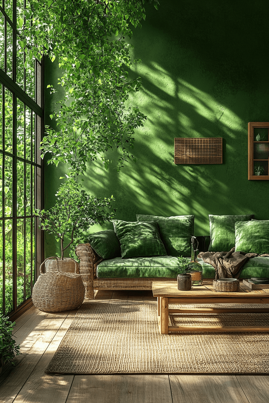 Green tones ground colorful living room ideas with a natural, refreshing vibe that feels calming and balanced. This color adds life without overwhelming. Wood elements enhance warmth. The space feels vibrant yet peaceful. The design connects with nature. Bring green tones into your living room.