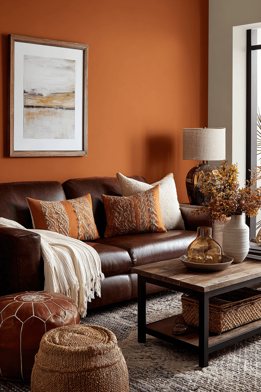 Terracotta hues warm colorful living room ideas with earthy charm and cozy appeal. Natural tones create a grounded atmosphere. Contrasting colors add interest. Textures enhance comfort. The space feels inviting and relaxed. Style your room with earthy warmth.