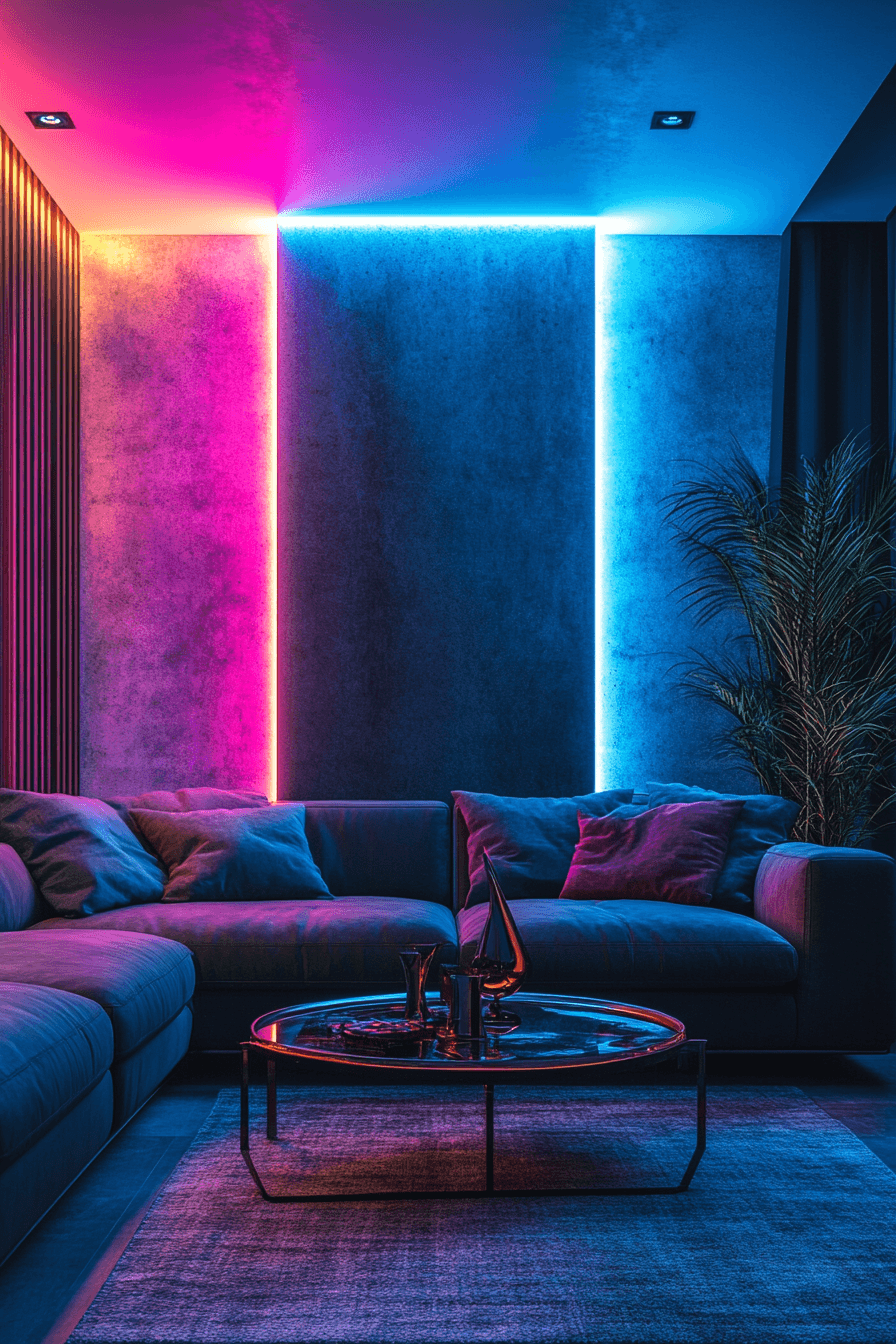 Neon highlights energize colorful living room ideas with glowing accents that create a bold, modern vibe. Bright pops stand out against simple backgrounds for maximum impact. LED lighting enhances the atmosphere beautifully. The space feels lively and youthful. Perfect for a creative or social environment. Add neon flair to transform your living room.