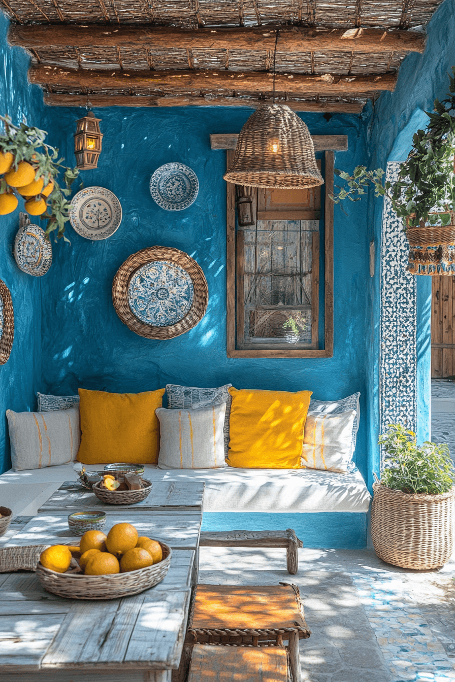 Sun-inspired palettes brighten colorful living room ideas with warm yellows and breezy blues that feel uplifting. These tones mimic natural light and outdoor beauty. Earthy accents ground the design. The space feels open and welcoming. The vibe is relaxed yet vibrant. Create a sunshine-inspired living room.