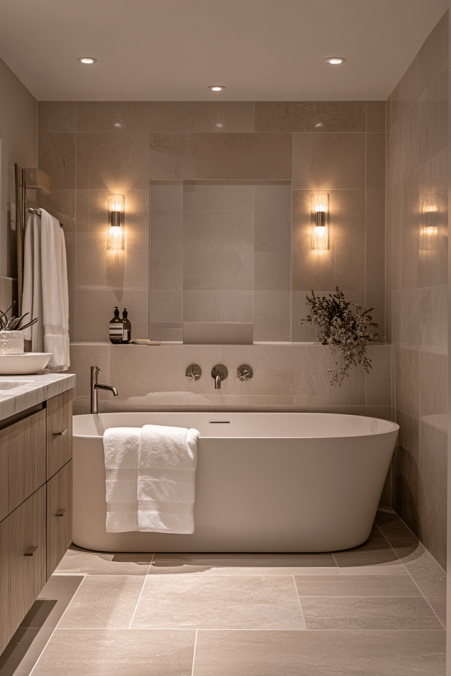 Creating a soaking area is one of the best ways to design a cozy bathroom retreat. Surrounding the tub with soft lighting and textures enhances relaxation. Warm tones make the space feel intimate and calming. Even smaller bathrooms can achieve this luxurious feel. The focus on comfort transforms the experience. Design your own peaceful soaking spot.