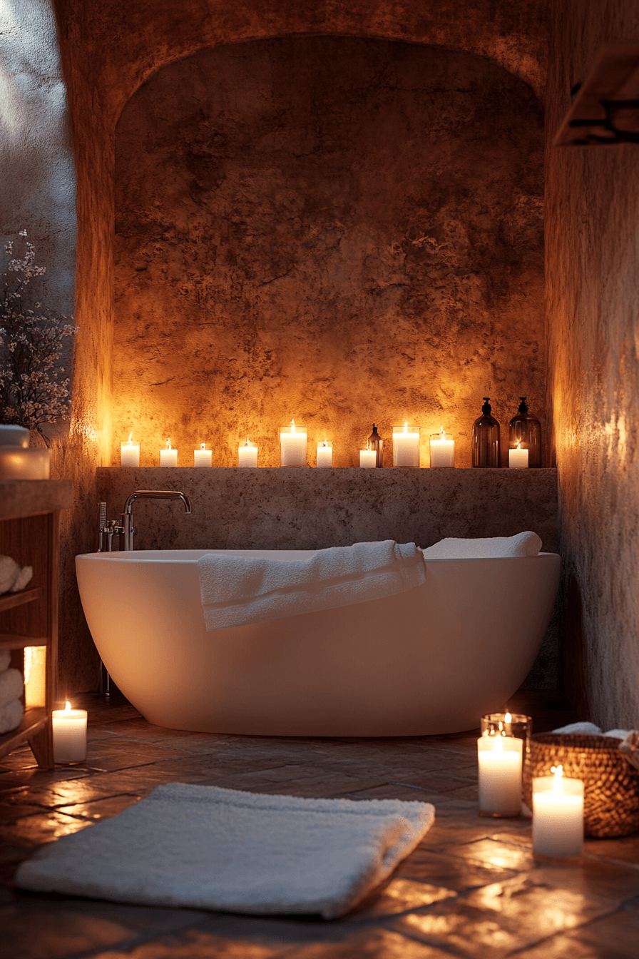 There’s something magical about a cozy bathroom filled with soft, flickering light. The gentle glow from candles creates a relaxing atmosphere that feels like a true escape. Pairing this lighting with natural materials and plush details enhances the spa-like experience. Every surface feels softer and more inviting under warm light. It turns an everyday space into a calming retreat. Add this peaceful ambiance to your bathroom today.
