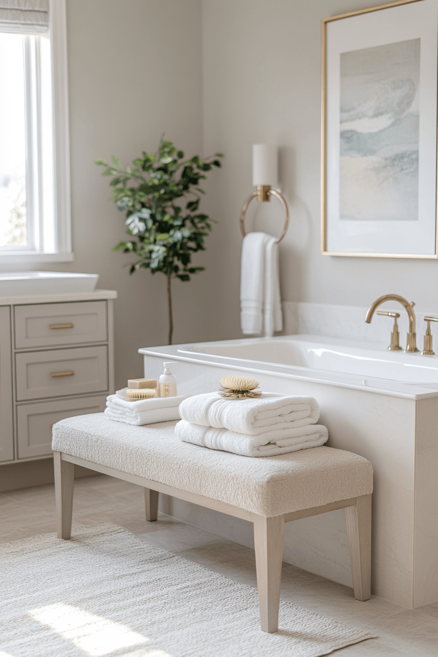 Designing a cozy bathroom in a small space is all about thoughtful details. A simple bench, neatly arranged towels, and curated decor can create a charming setup. Soft lighting and neutral tones keep everything feeling calm and cohesive. The design proves that even compact spaces can feel luxurious. Every piece plays a role in creating comfort. Reimagine your bathroom with these smart ideas.
