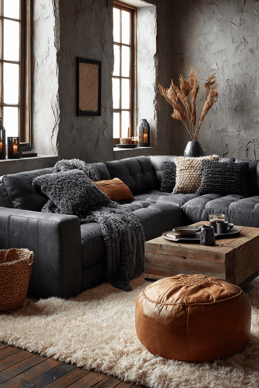 Layered textures bring depth into a dark grey sofa living room while maintaining a refined look. Knits, boucle, and woven materials add warmth and comfort. A monochrome palette keeps everything cohesive. Mixing textures adds interest without clutter. The space feels cozy yet sophisticated. Elevate your room with texture.