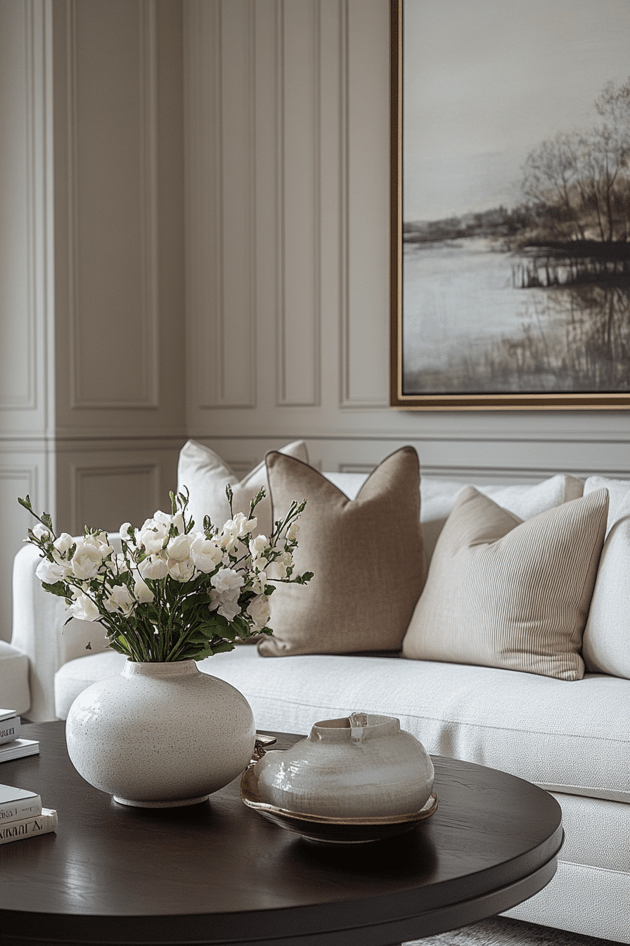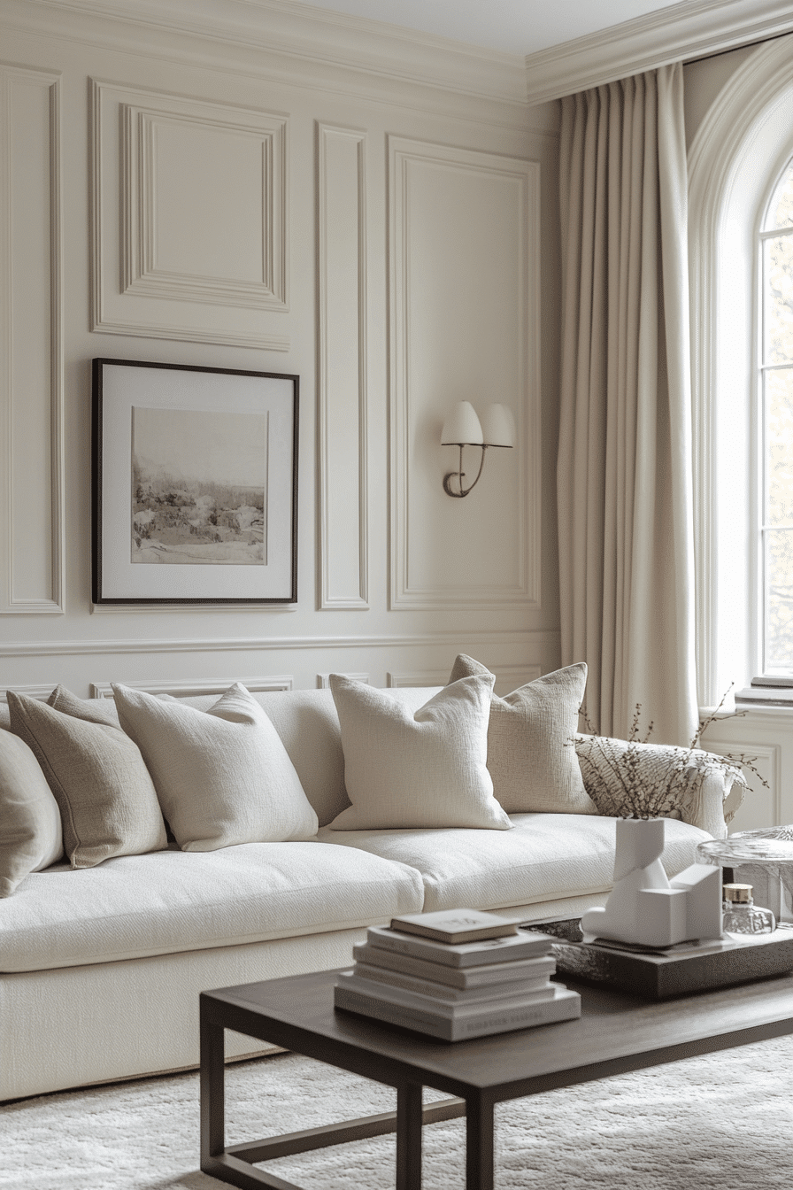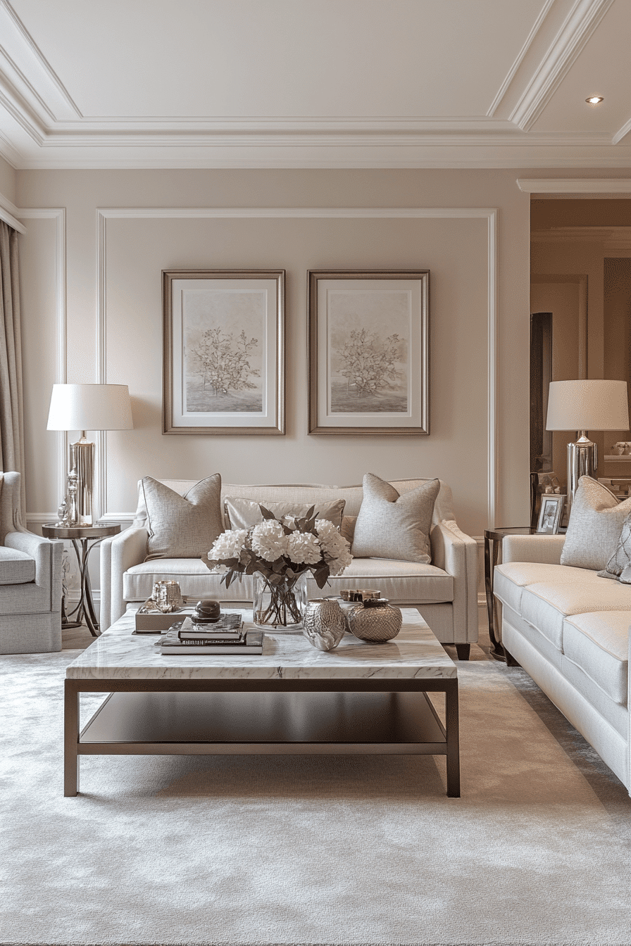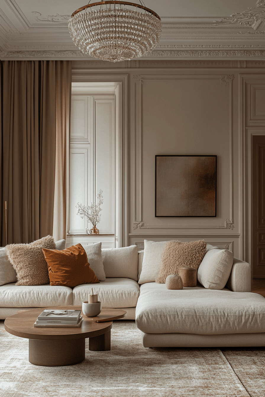 Layered neutral elements add richness to an elegant living room design without relying on bold color. Mixing materials like wood, fabric, and subtle metals creates dimension. Carefully placed focal pieces maintain interest. The space feels warm and balanced. This approach emphasizes quality over excess. Elevate your neutrals with layers.
